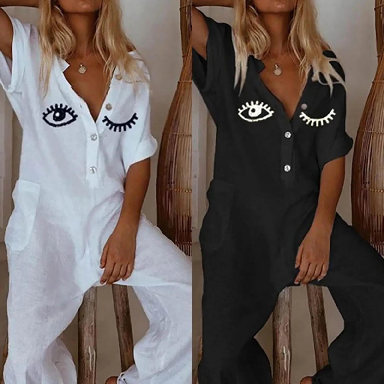 Уличный белый сексуальный комбинезон, женские комбинезоны, комбинезон с короткими рукавами, широкие брюки, летние женские комбинезоны, женские комбинезоныОсобенности: