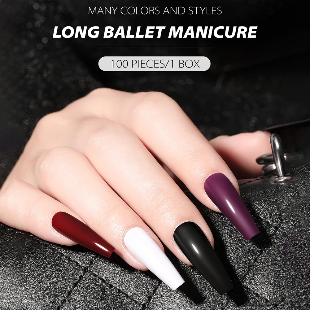 100 шт. полное покрытие накладные ногти балерина Маникюр однотонные...