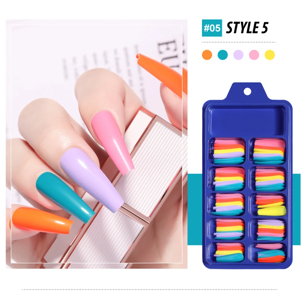 Накладные ногти для самостоятельного наращивания, 100 шт., разноцветные бесшовные ногти с полным покрытием, красивый декор для ногтей, французские накладные ногти, инструменты для маникюра