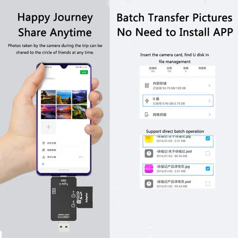 Адаптеры для телефонов OTG USB2.0TYPE-Cмикро Usb Все в 1 TFSD карты...