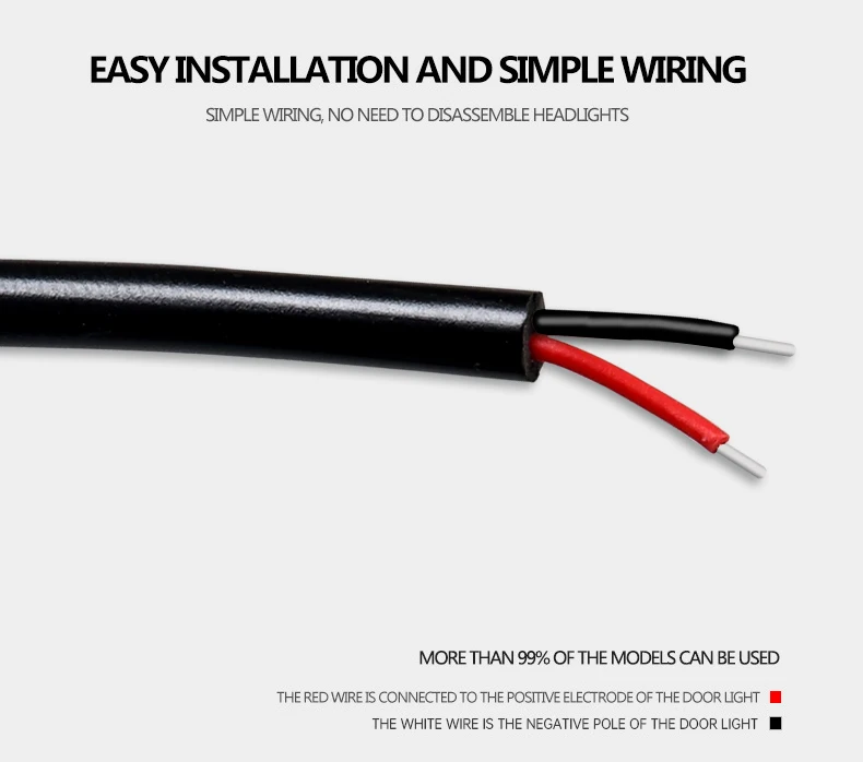 Характеристика:Тип: Автомобильный Дверной светильникМатериал: силикагельВходное напряжение: 12 ВПрименимо: подходит для всех автомобилейСветильник тип цвета: поток и воротаРабочая температура: - 40 ~ 50Светильник Размер: 120 смУстановка1. Наклейте его на дверь2. Проводка (если дверь имеет желанную лампу, она может быть непосредственно подключена к источнику питания желанной лампы)