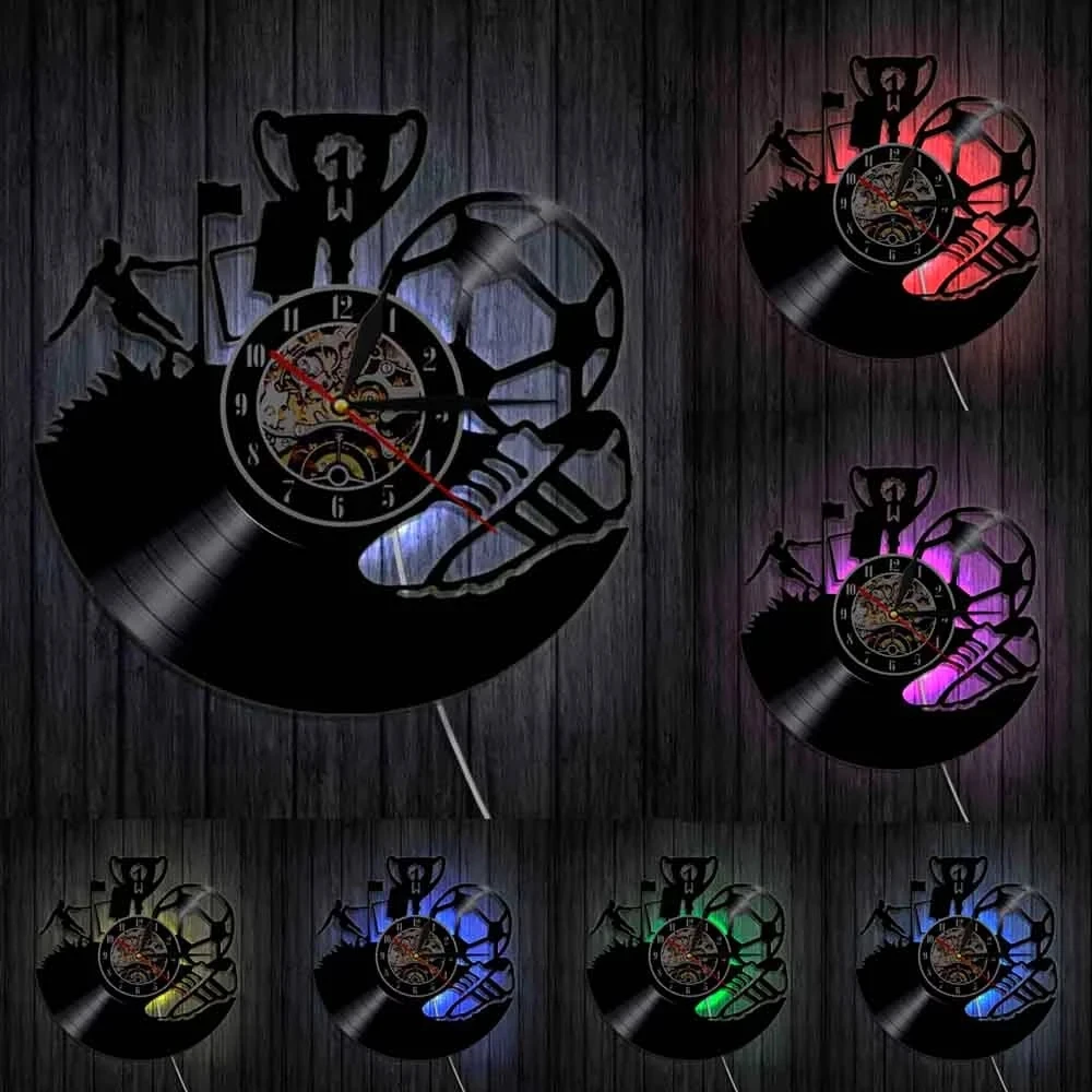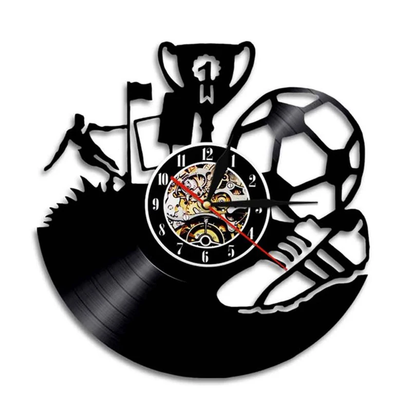 Персонализированные настенные часы с футбольным мячом, виниловые ча...