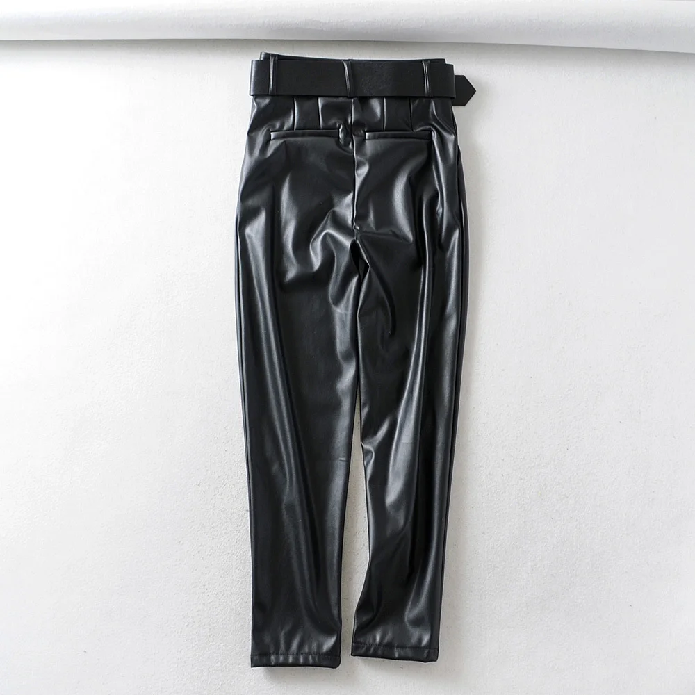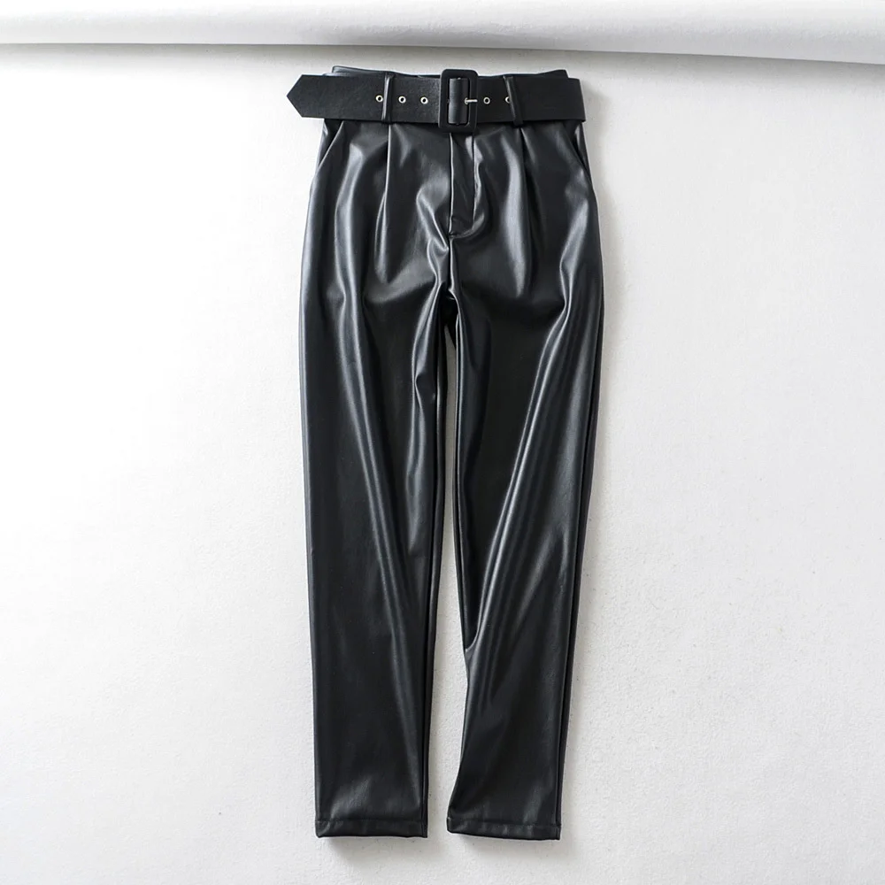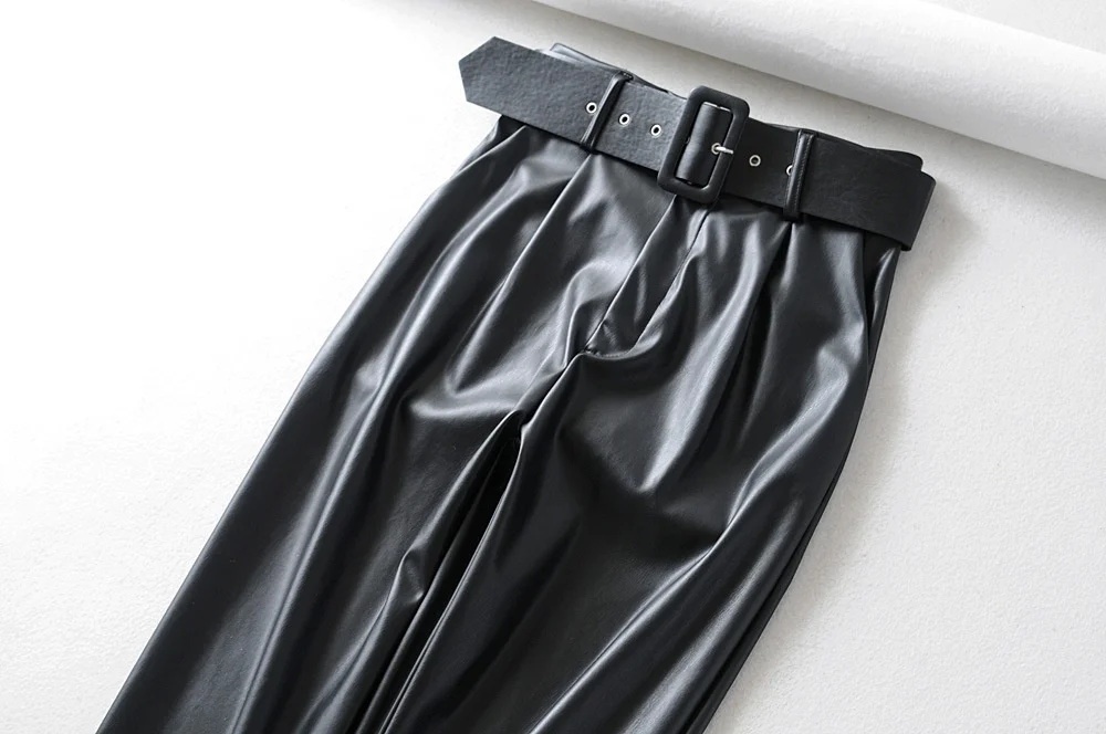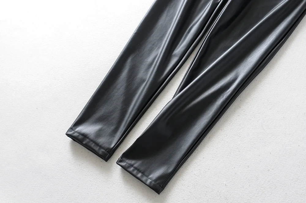 Брюки женские из искусственной кожи, с высокой талией, 3 цвета