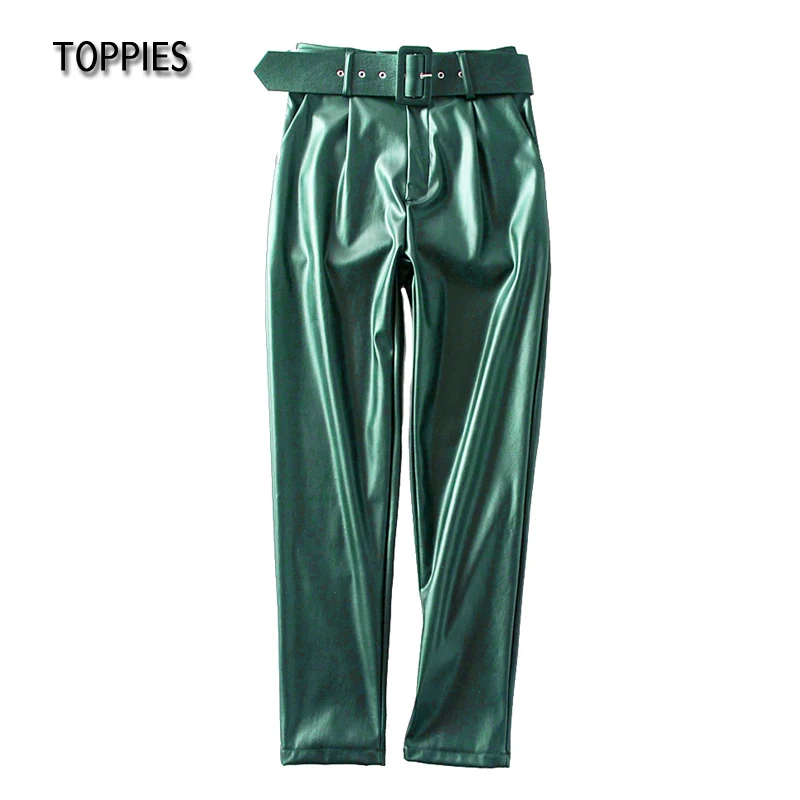 Брюки Toppies женские из искусственной кожи, Костюмные прямые флисовые штаны с высокой талией и поясом, уличная одежда, осень-зима 2021