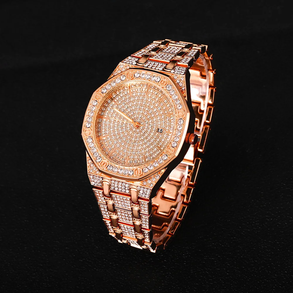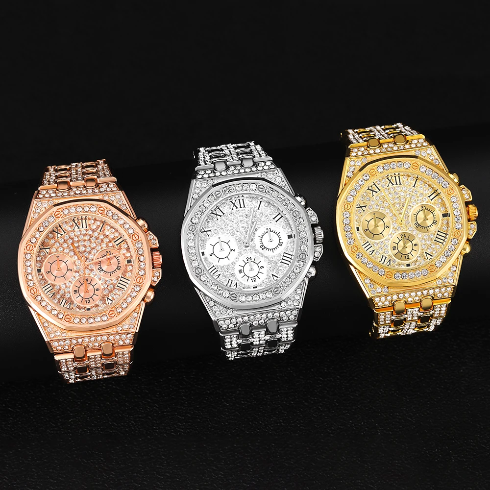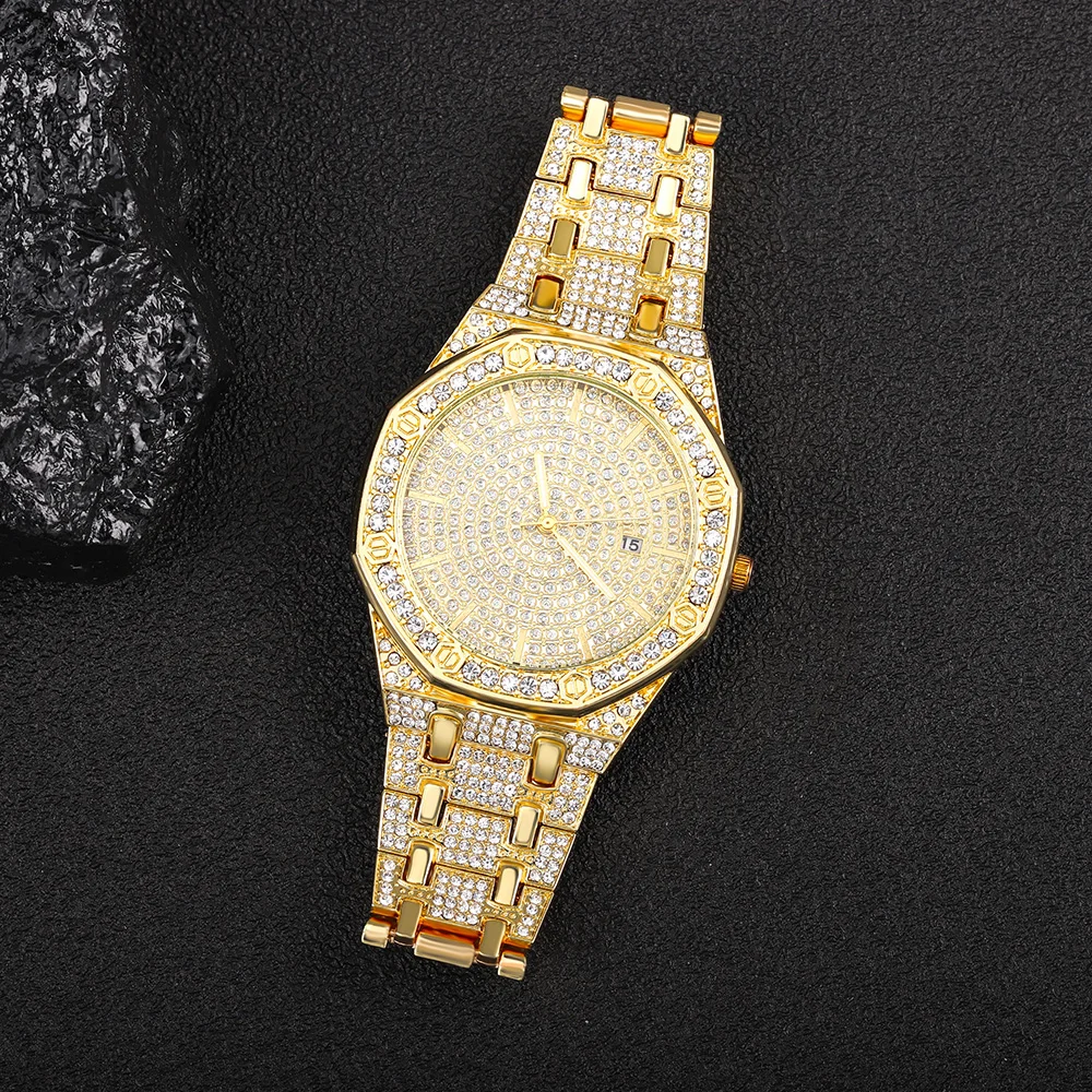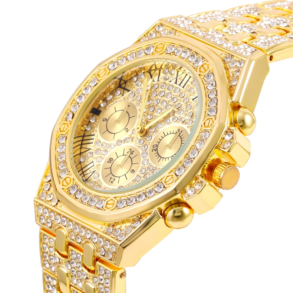 Мужские часы с бриллиантами, Кварцевые Золотые часы в стиле хип-хоп...