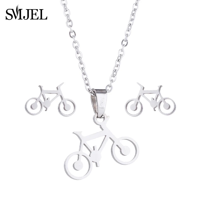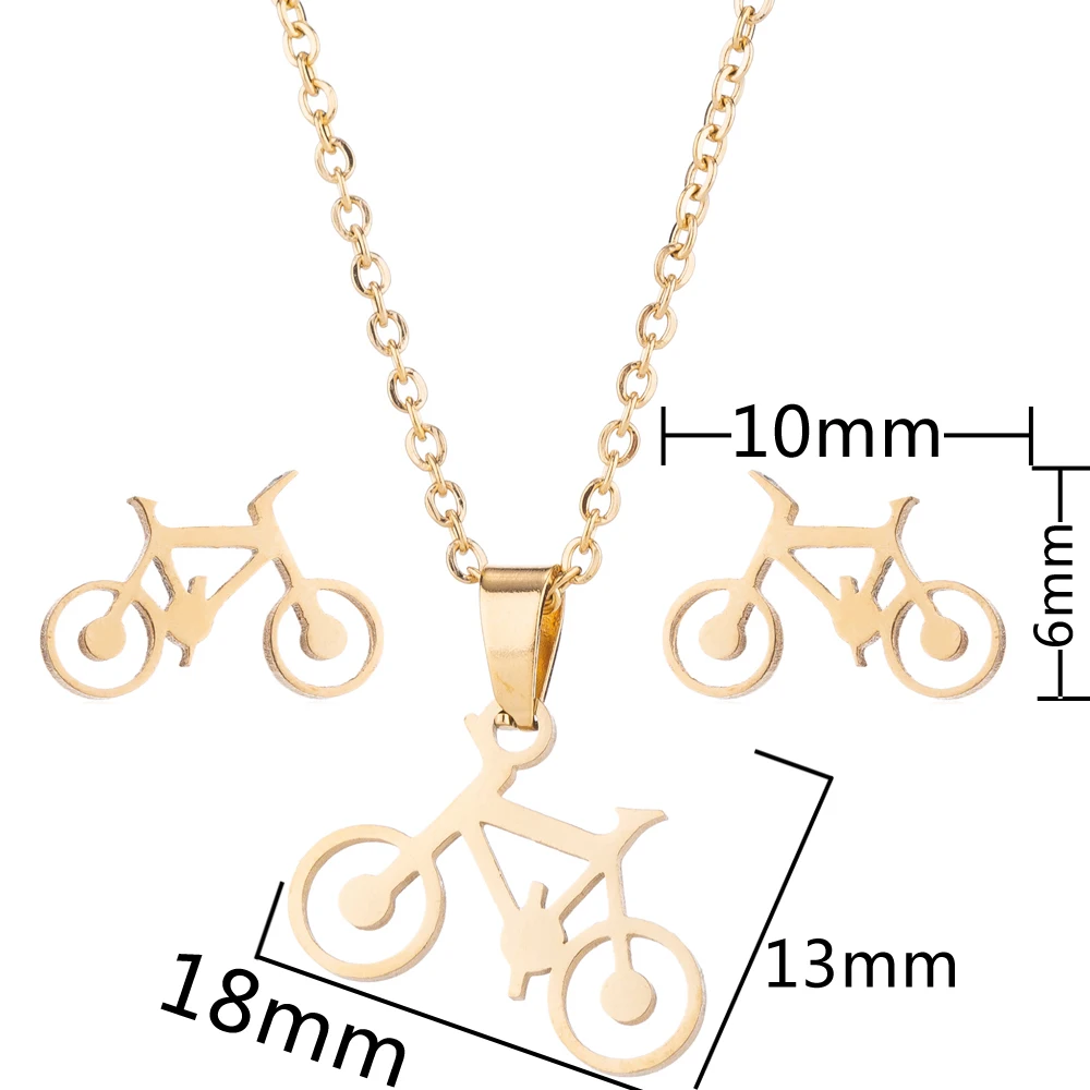 Золотые ожерелья с подвеской для велосипеда для женщин и мужчин, трендовые Ювелирные наборы 2021, серьги в форме велосипеда, ожерелья, подарки на день рождения, серьги