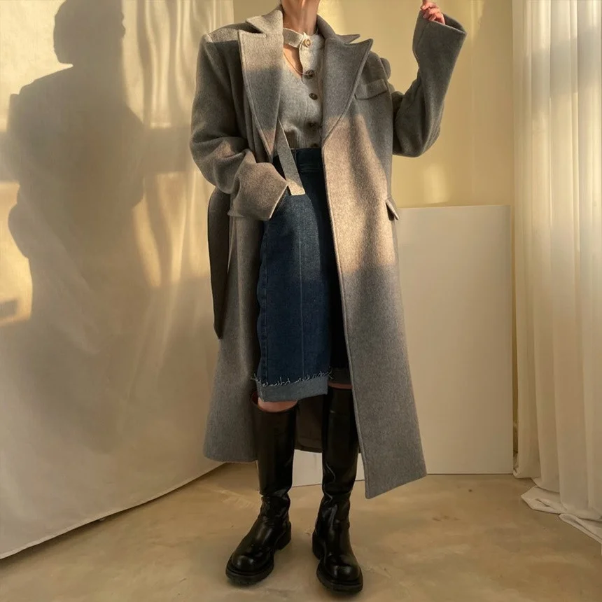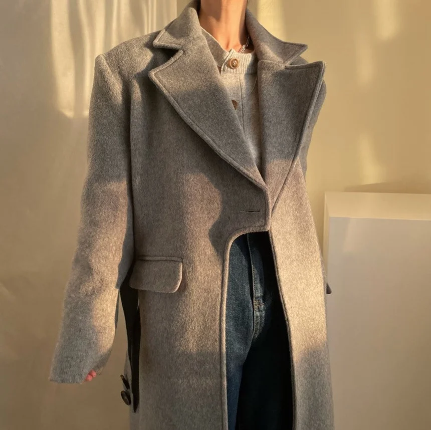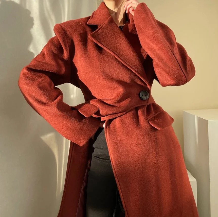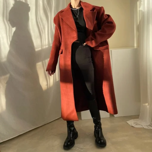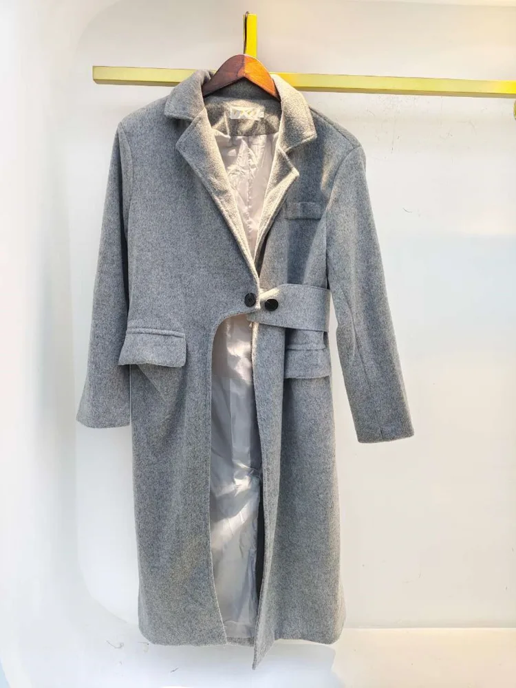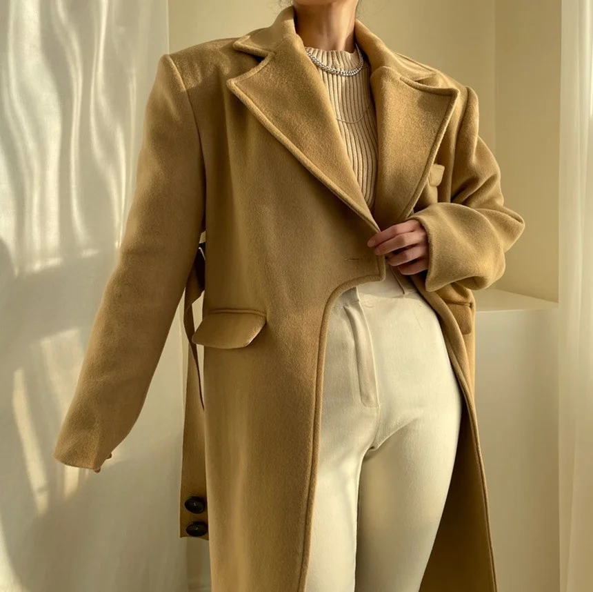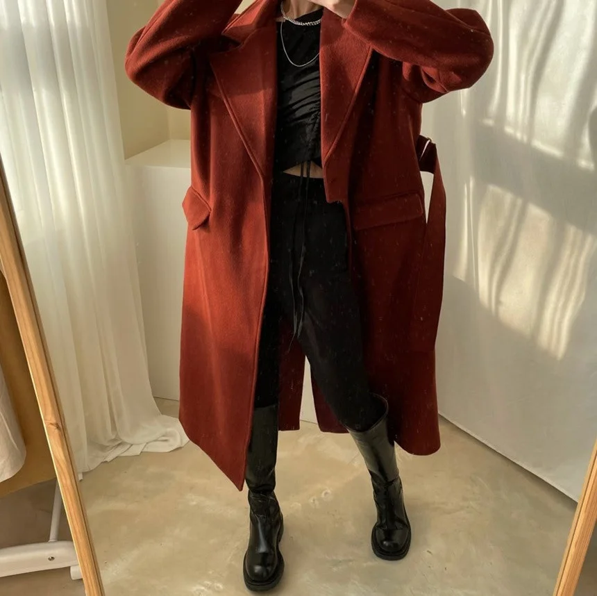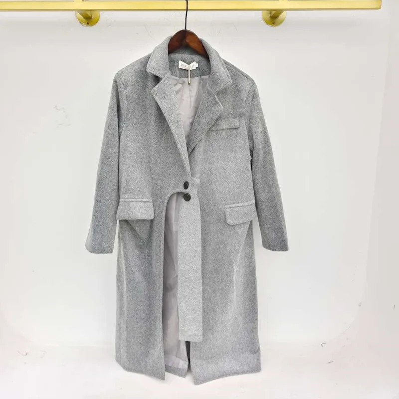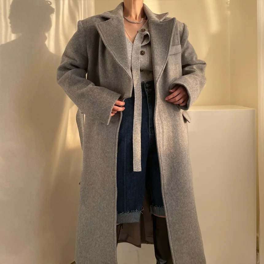 Женское шерстяное пальто с поясом EWQ, черное свободное асимметричное шерстяное пальто в Корейском стиле с отворотом и пряжкой, с пряжкой на талии, 5E29, весна-Зима 2022
