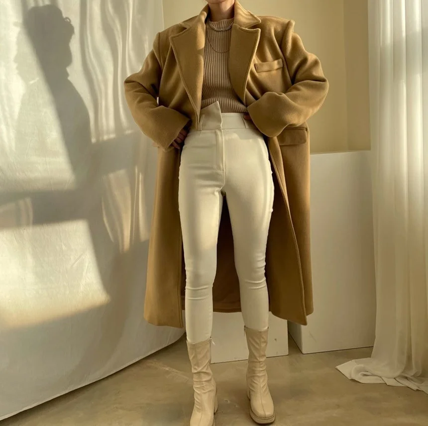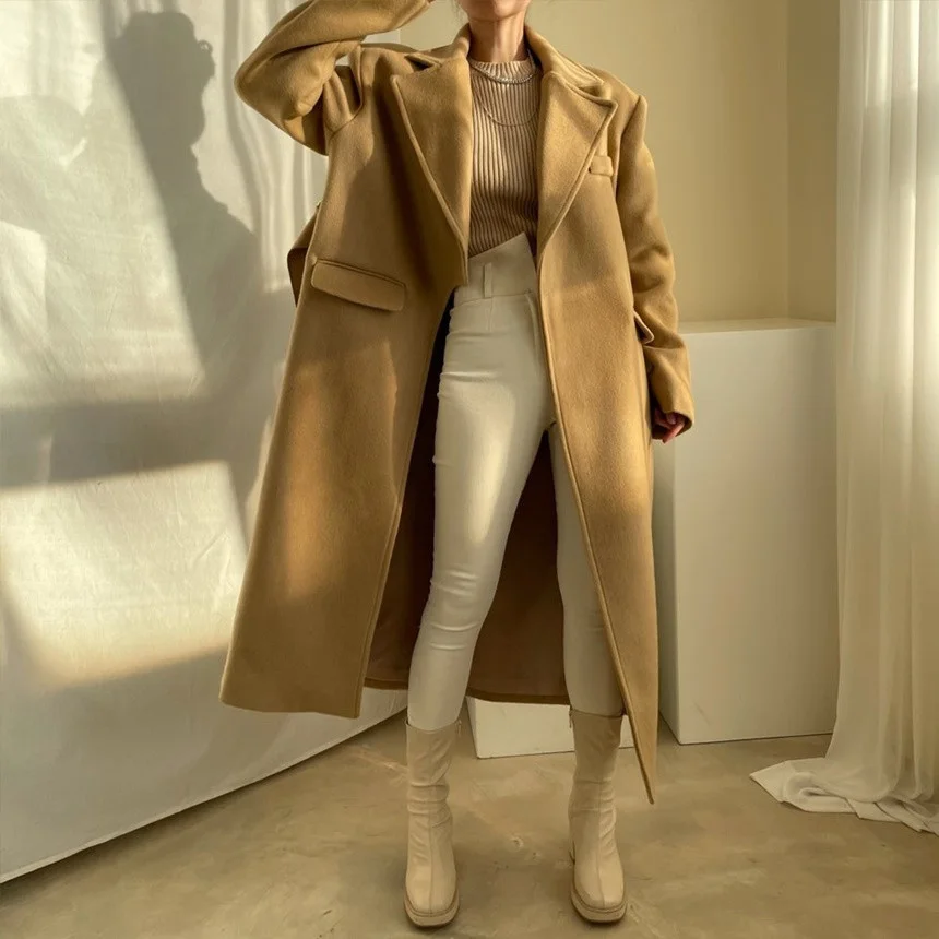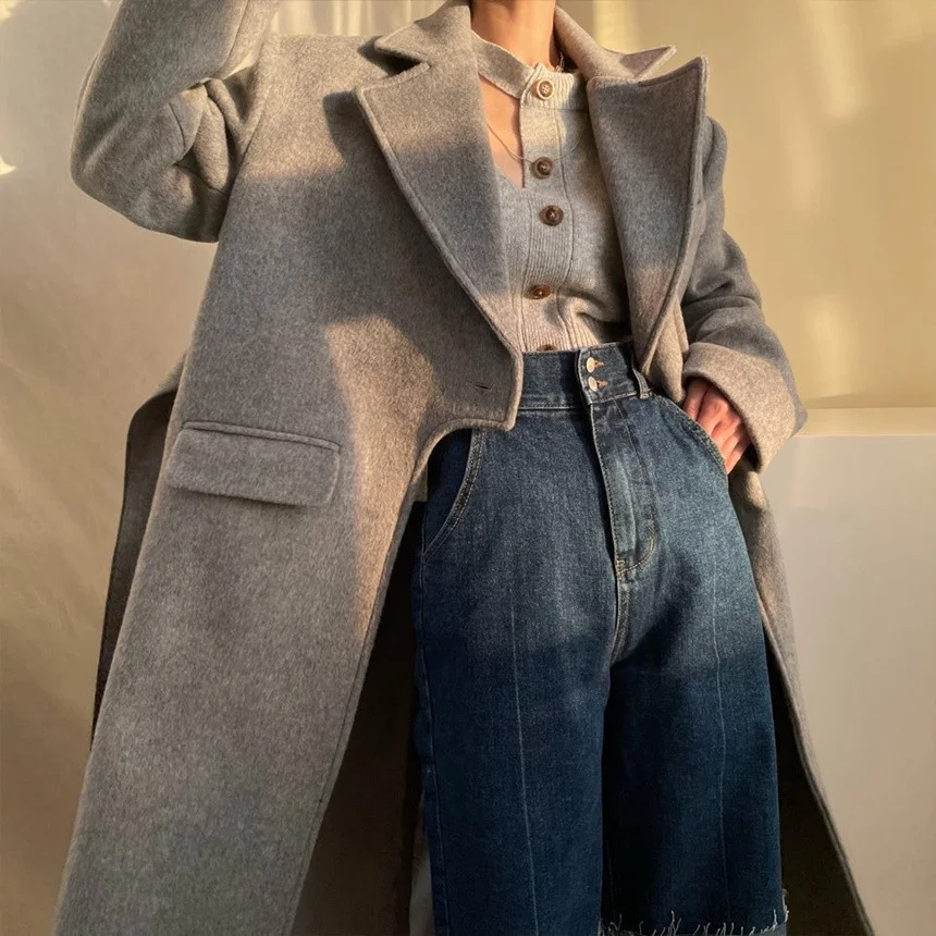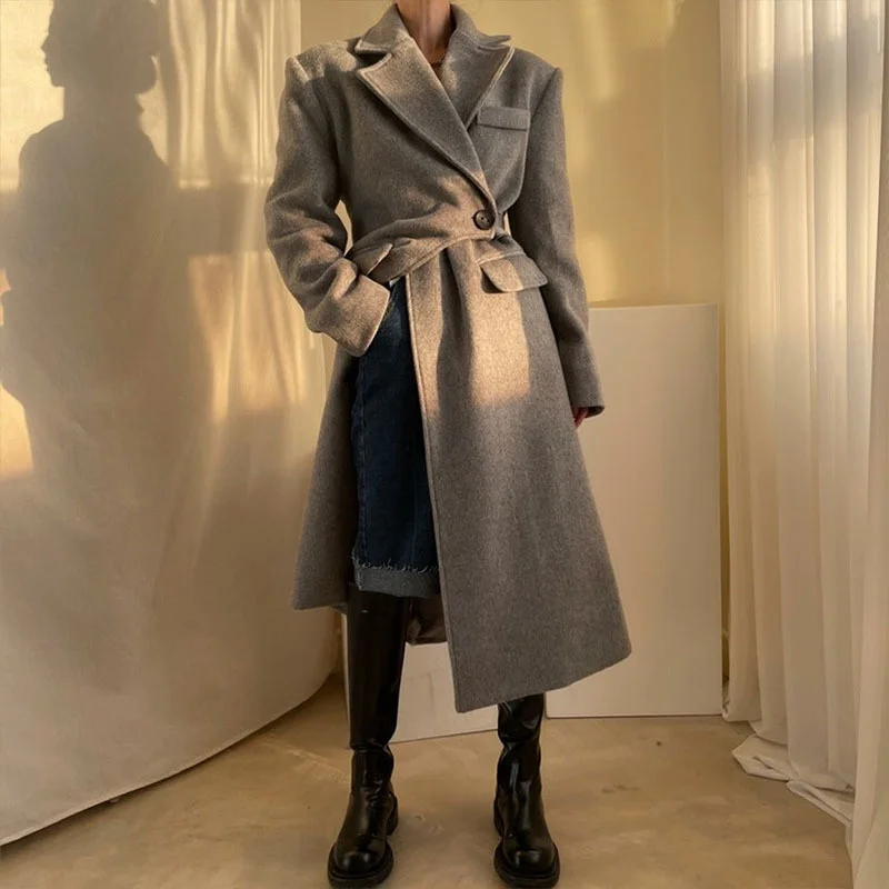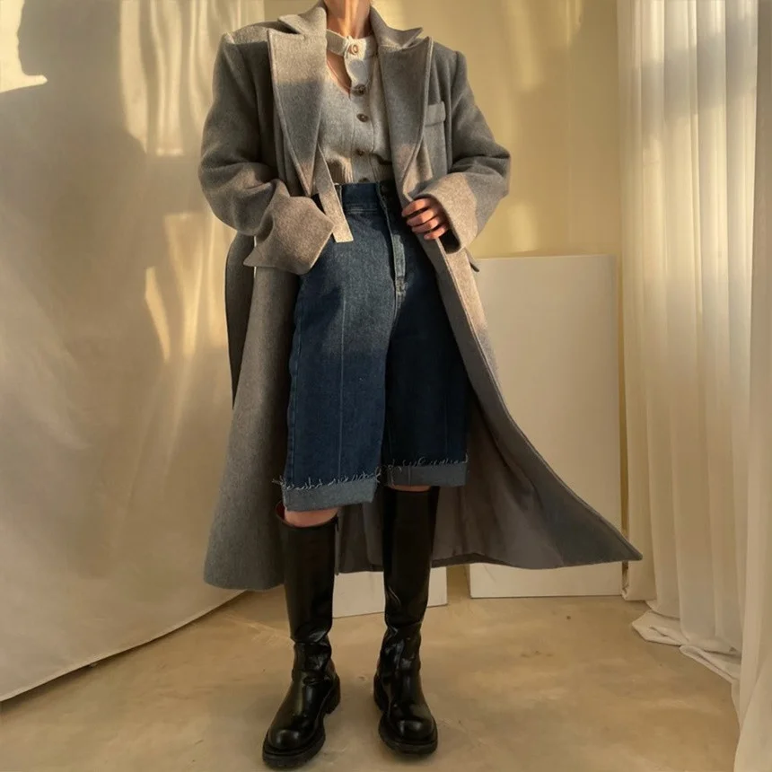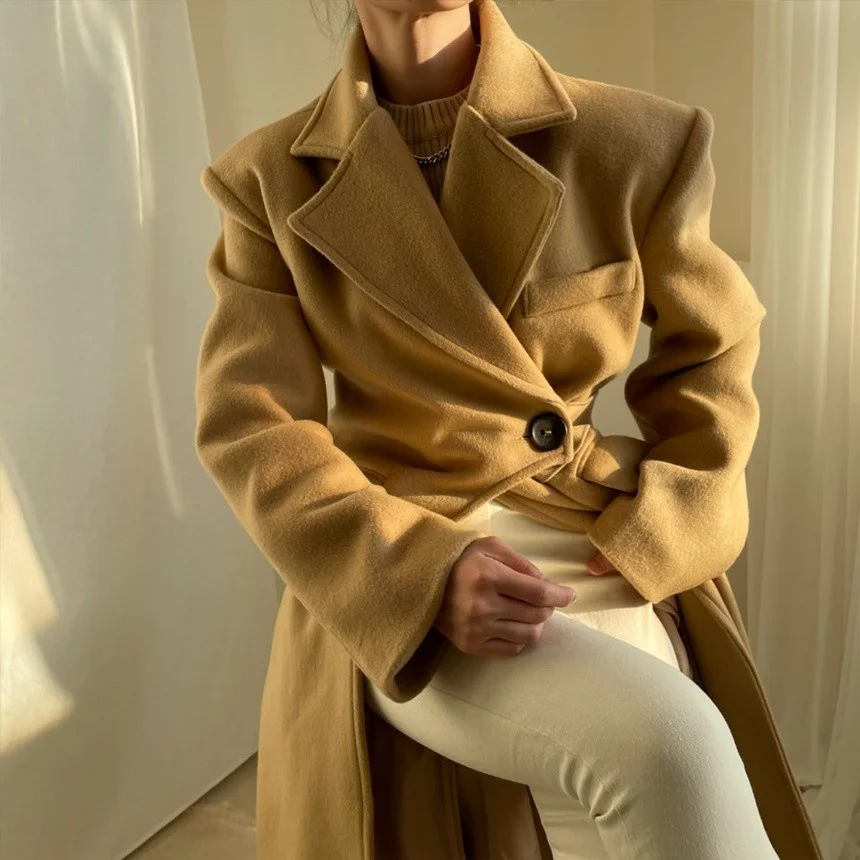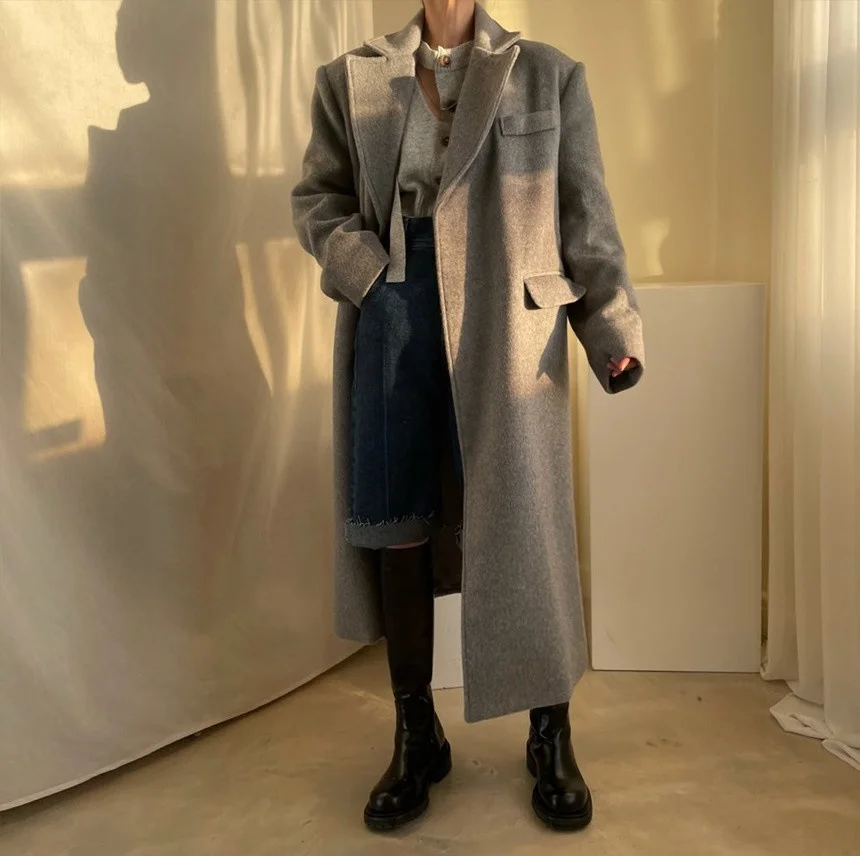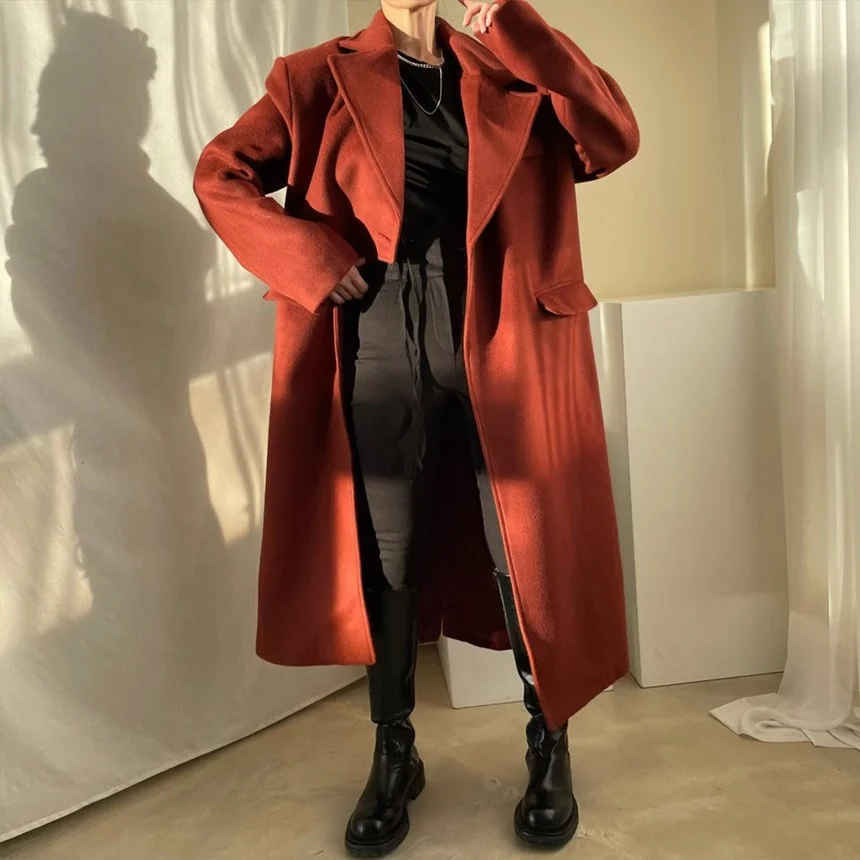 Женское шерстяное пальто с поясом EWQ, черное свободное асимметричное шерстяное пальто в Корейском стиле с отворотом и пряжкой, с пряжкой на талии, 5E29, весна-Зима 2022
