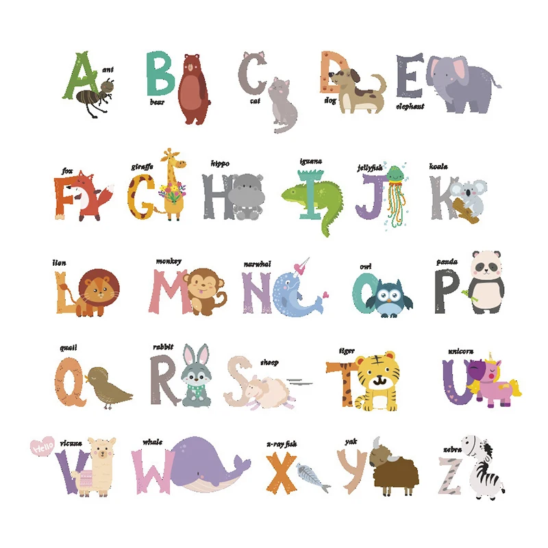 Мультфильм животных 26 ABC Алфавит настенные наклейки слова спальня...