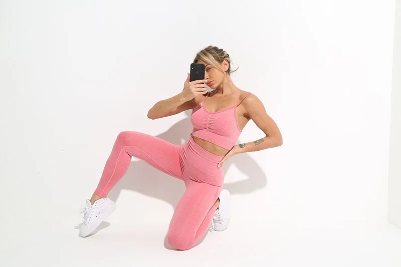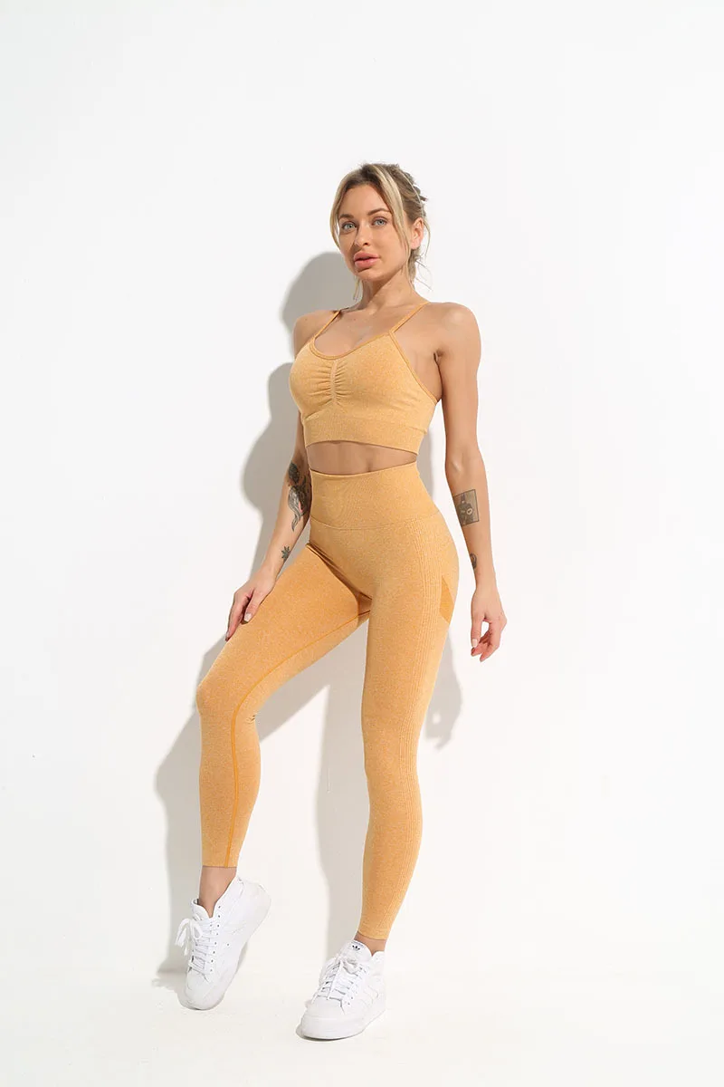 Комплект для йоги бесшовный Женский спортивный костюм из 2 предмето...