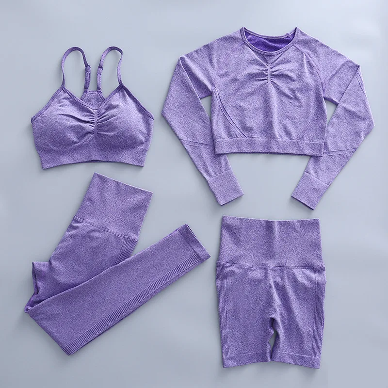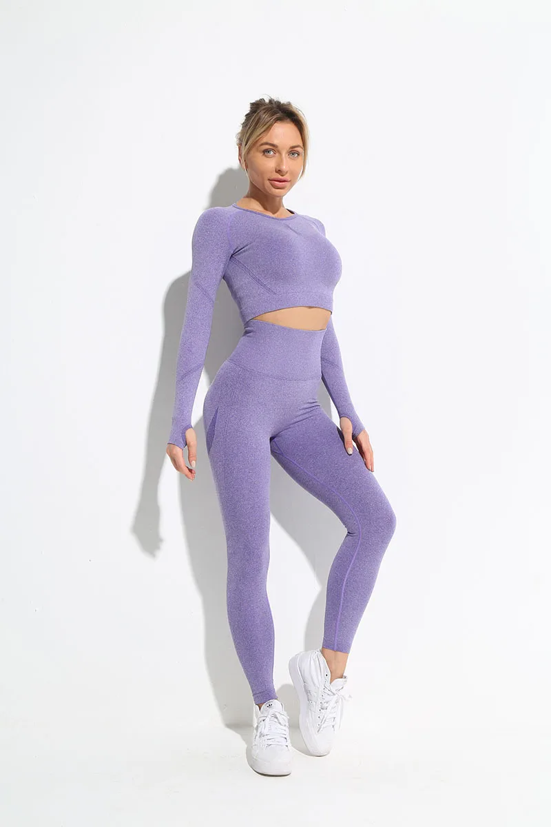 Бесшовный комплект для йоги, спортивная одежда, женский сексуальный бюстгальтер, подтяжки, женский короткий топ с длинным рукавом, леггинсы с высокой талией, спортивные костюмы