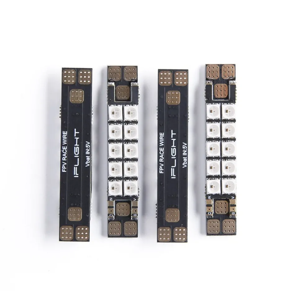That’s why iFlight release this RGB 10 LED 3535 Multi-Colors Race Wire. It is designed with 2oz copper and a 2 layer board which provide virtually no difference in resistance and weight difference when compared to previous original Race Wire but liberates you from extra soldering RGB LED strips job, which is perfect for frames with slim arms. You also have access to multi-colors on one board, no more picking one color LED like before.