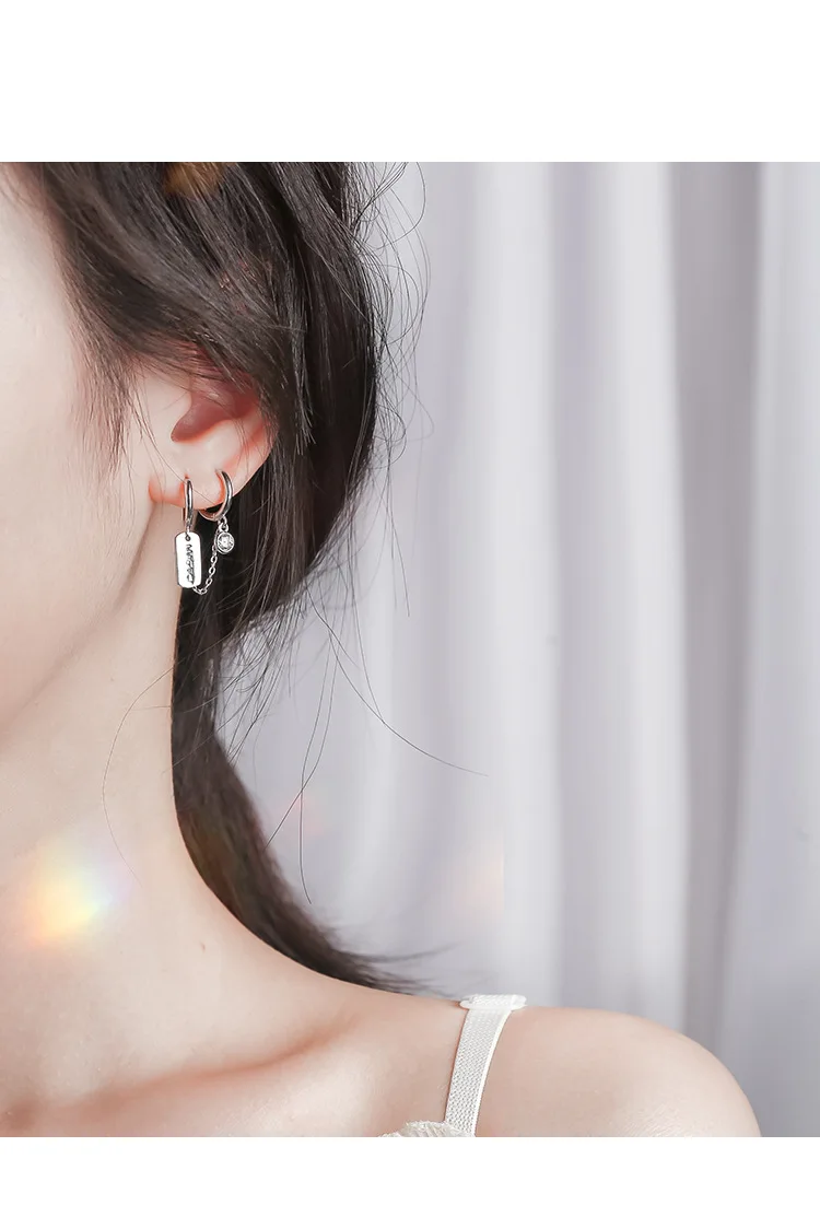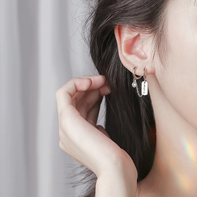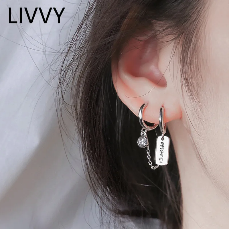 Серьги LIVVYSilver с двойными отверстиями для ушей, круглые ювелирные украшения с квадратными буквами из циркония в стиле панк вечерние простые трендовые подарочные аксессуары