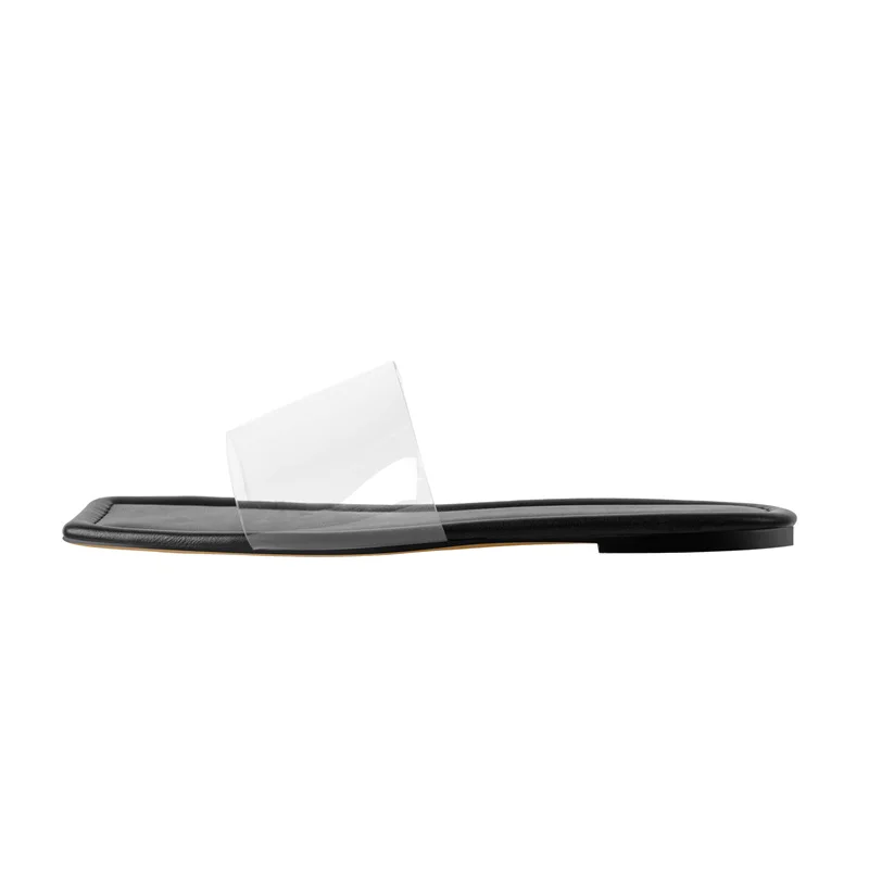 Женские шлепанцы Onlymaker, из ПВХ, матовые, черные, на плоской подошве, большие размеры, для повседневной носки, лето сандалии с квадратным носком