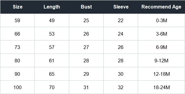 Разница в 2-3% в соответствии с измерениями вручную.Прежде чем купить эту товарную позицию, просим тщательно свериться с таблицей размеров.1 дюйм = 2,54 смОбратите внимание что небольшая разница в цвете считается приемлемой. Это может быть связано с положением источника света и с настройками экрана.Что вы получаете:1 детский комбинезон