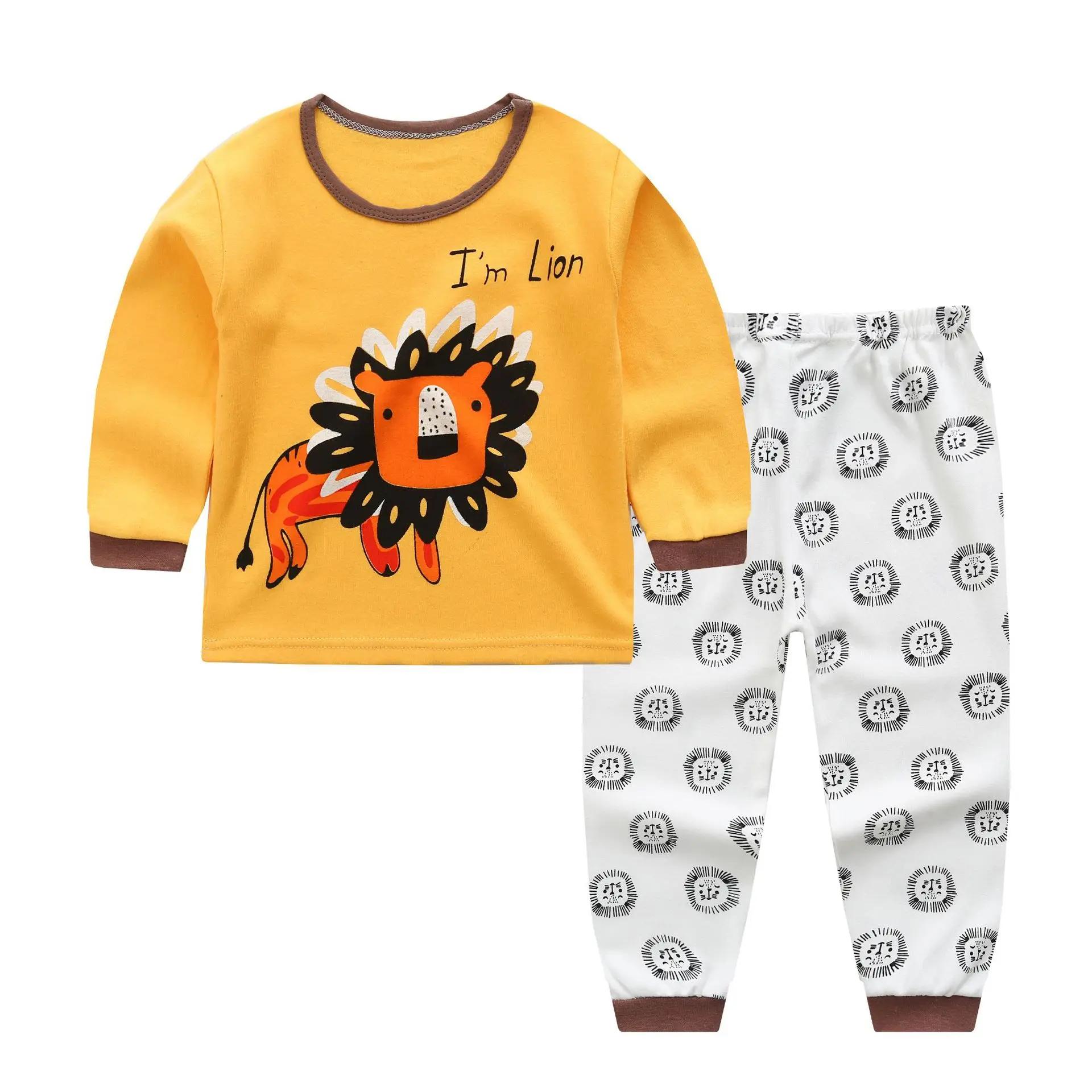 Новый модный детский пижамный комплект, Хлопковая пижама с мультяшным принтом для детей, костюм для маленьких девочек и мальчиков из 2 предметов, одежда для сна, домашняя одежда
