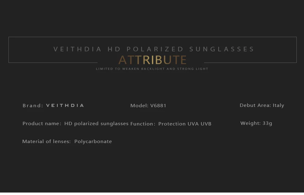 Солнцезащитные очки унисекс VEITHDIA, винтажные дизайнерские очки из алюминия, с поляризационными стеклами, степень защиты UV400, S6881, 2019