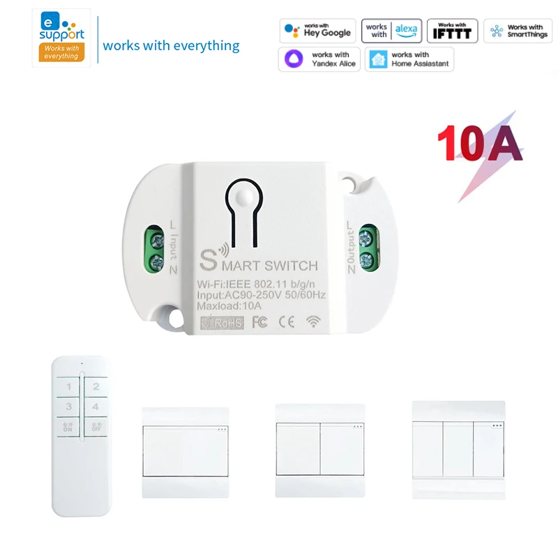 Умный выключатель с поддержкой Wi-Fi и Bluetooth, 10 А, 2,4 ГГц