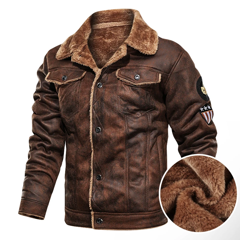 Куртка мужская из искусственной кожи, теплая кашемировая военная ку...