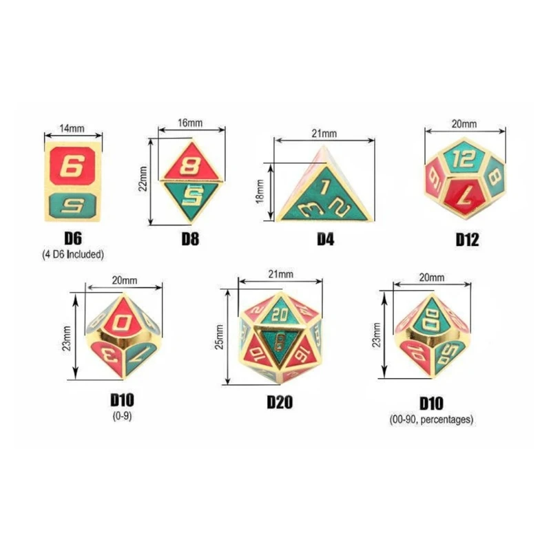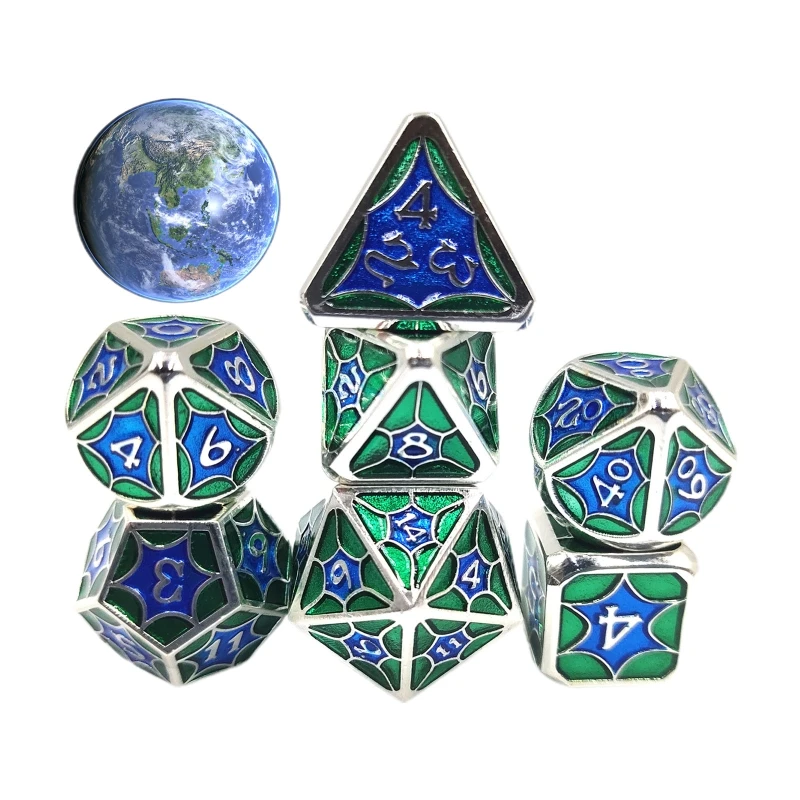 7 шт.компл. сплав металла полигедрические кубики D20 D12 D10 D8 D6 D4 для DND ролевой игры MTG Tabl