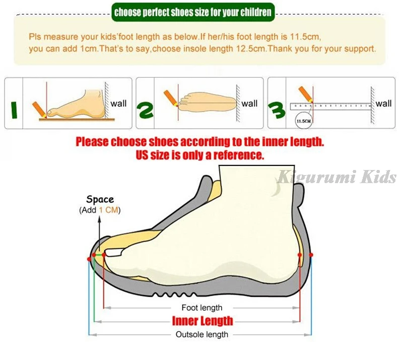 Обувь внутренняя Длина = стопы Длина + 0,5 ~ 1 см