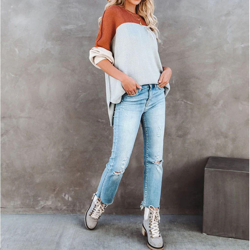Женский модный вязаный свитер с рукавами летучая мышь, свободный повседневный уличный свитер, пуловер с круглым вырезом и длинным рукавом, Новинка осени и зимы 2021