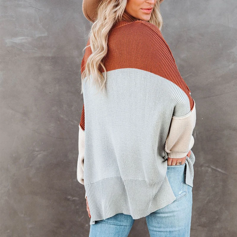 Свитер Женский вязаный, с круглым вырезом и длинным рукавом, Осень-зима 2021