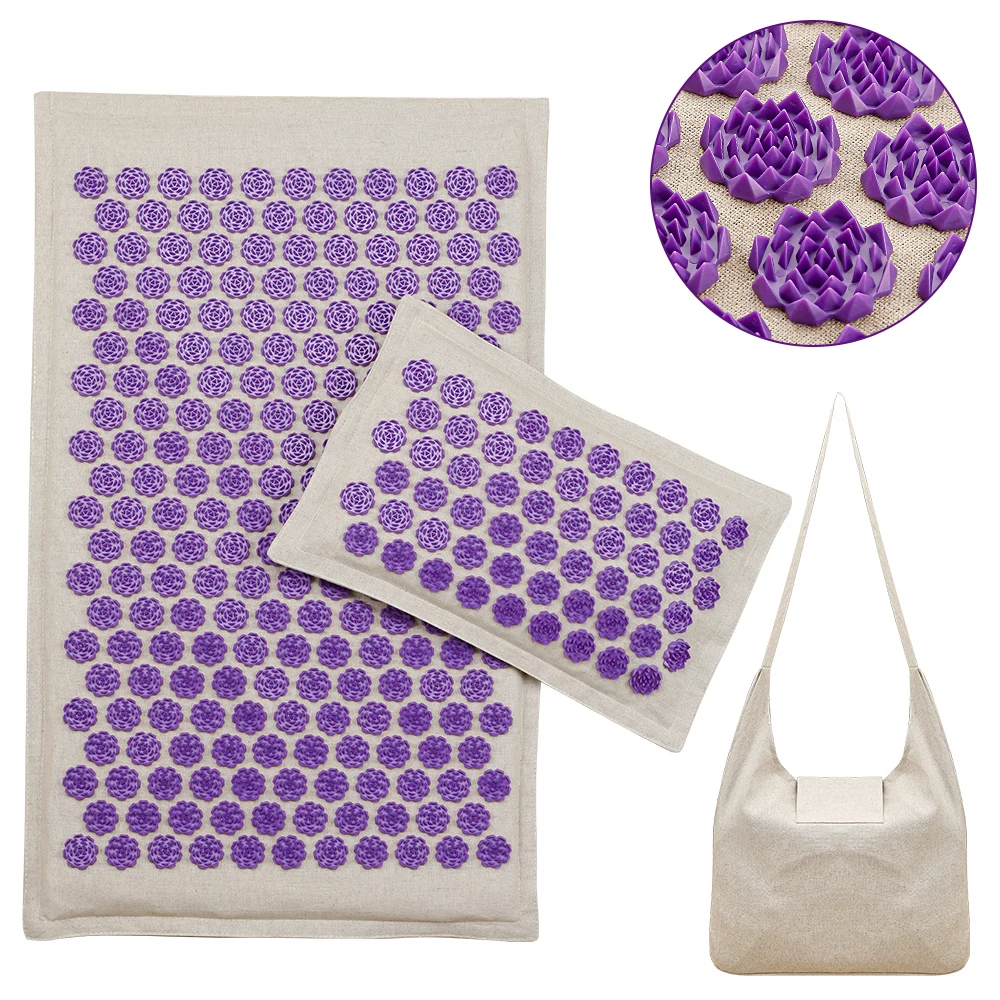 Натуральный льняной коврик для йоги с кокосовой ладонью, спортивный коврик для подушки с сумкой, коврик для акупрессуры с шипами лотоса, подушка