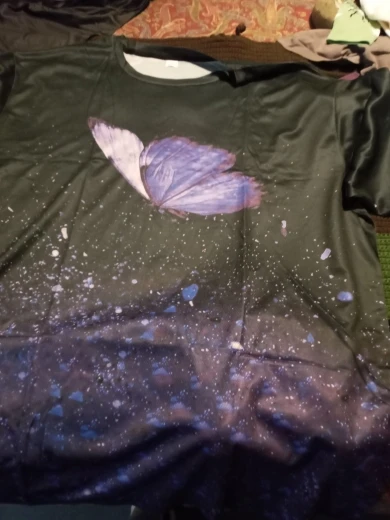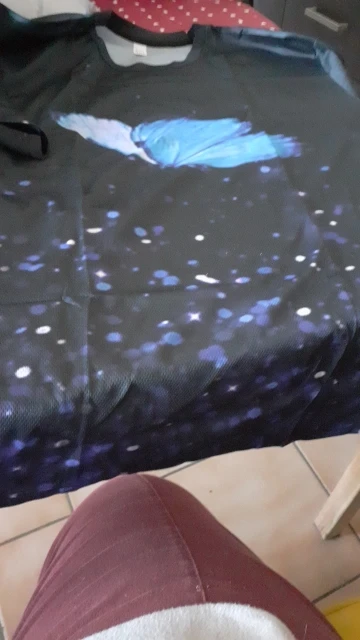 получила футболку- качество материала ужасное, как из целофана пошита. размерная сетка не соответствует, заказала по размерной сетке xs, по плечам- 38 см, по факту - видно на фото. открыла спор, вернули деньги. вообще не советую. не тратьте деньги.