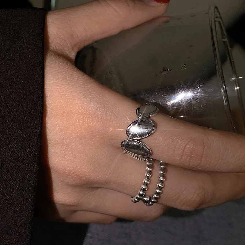 Кольцо-цепочка женское серебристого цвета, овальное, в горошек
