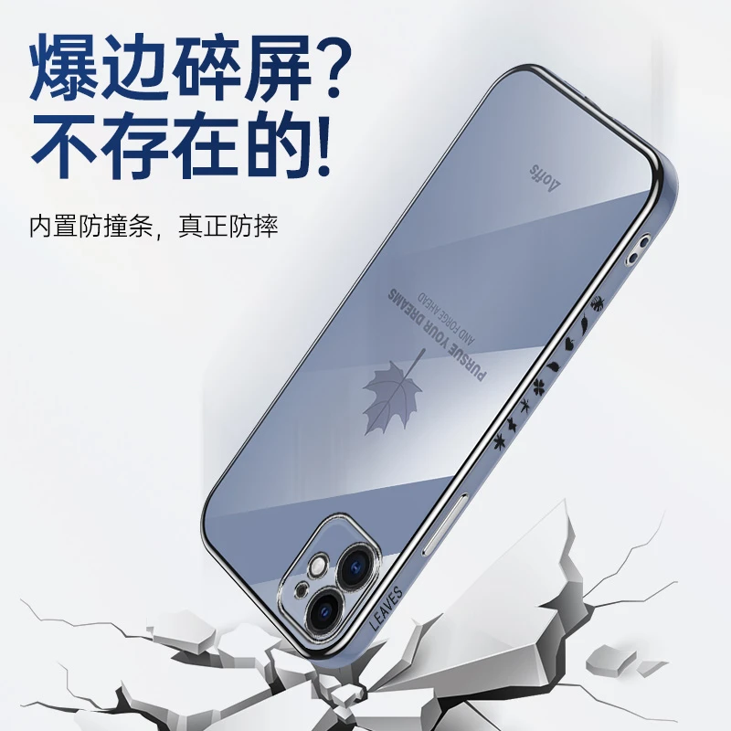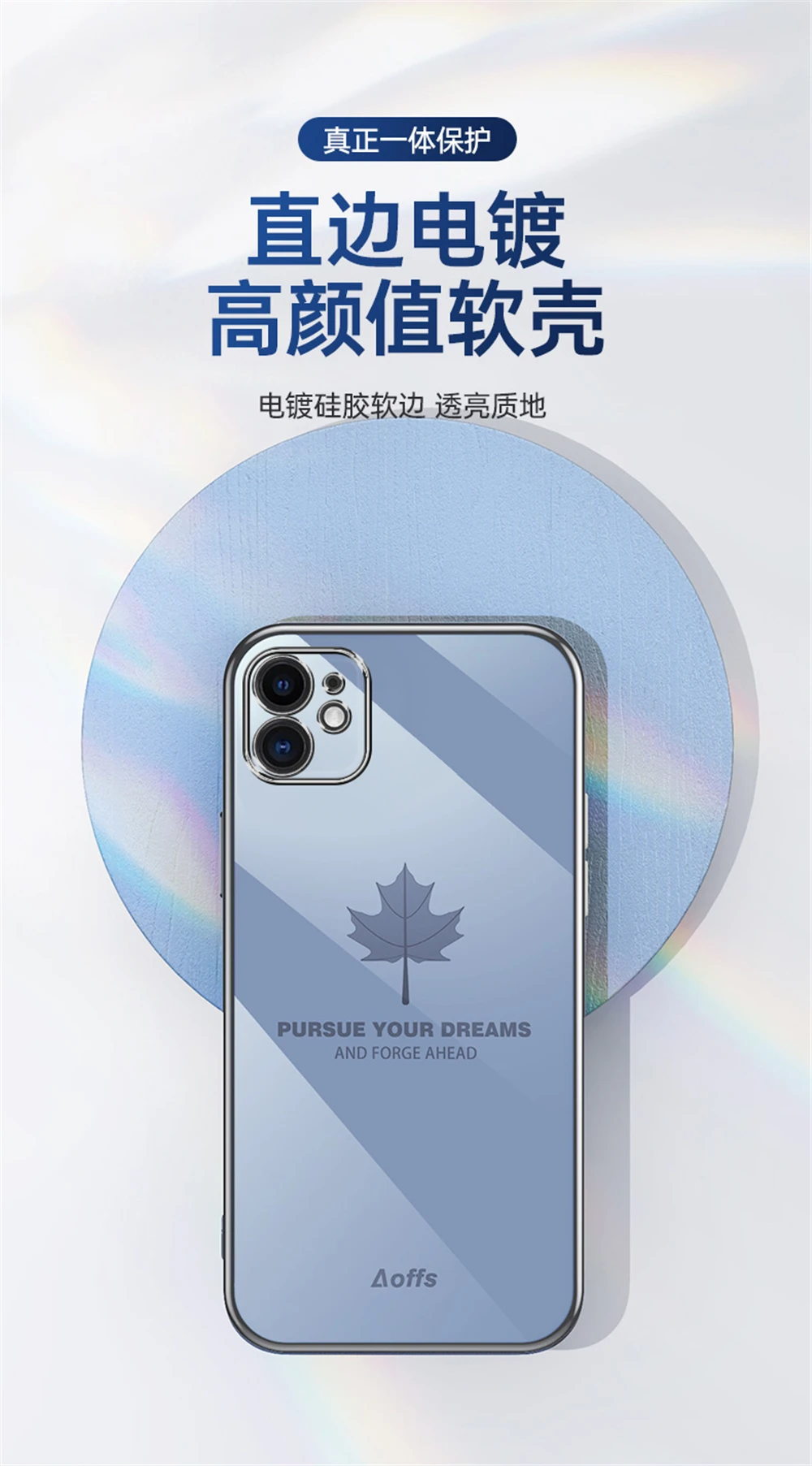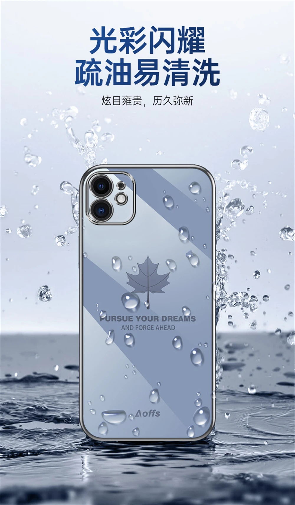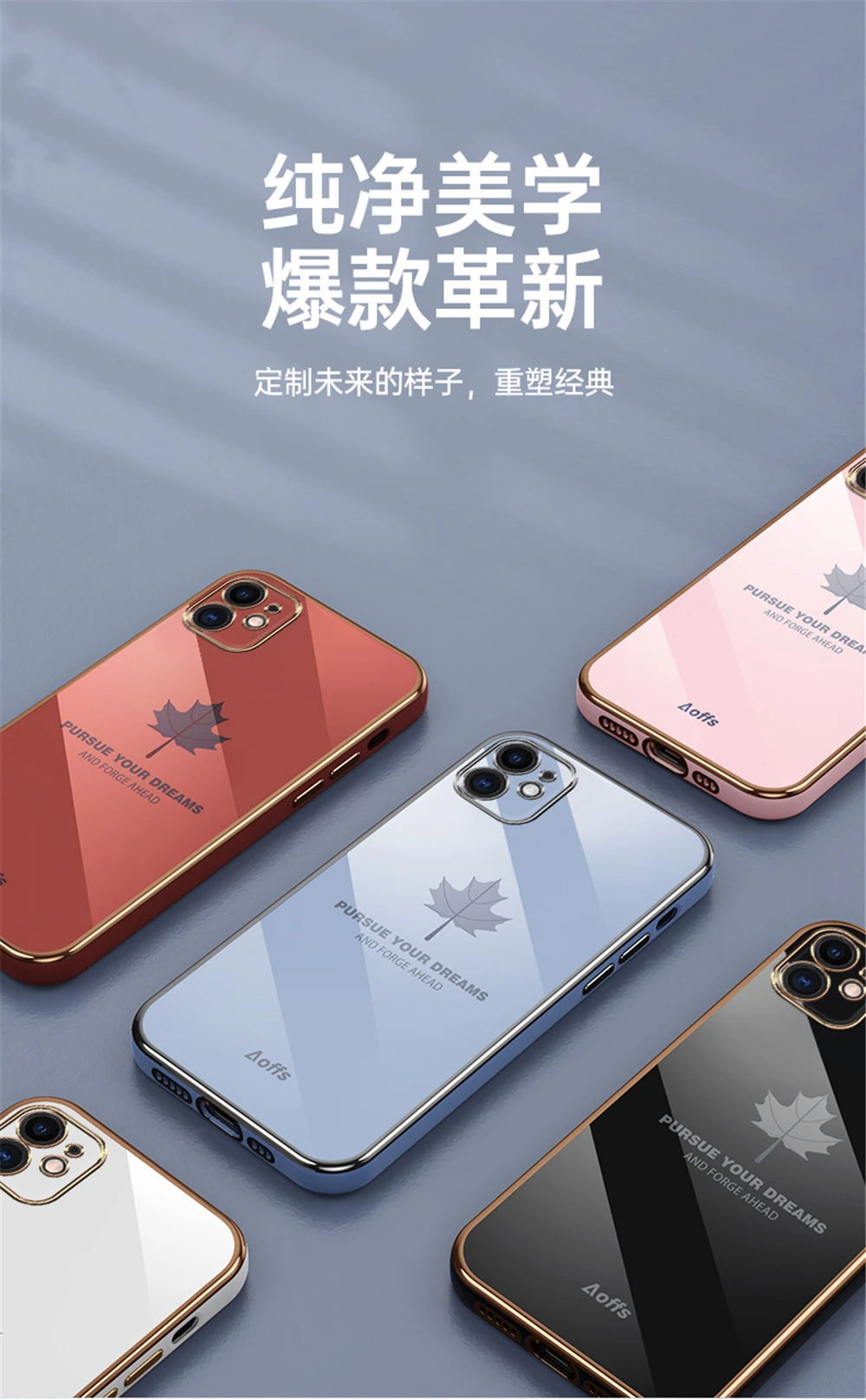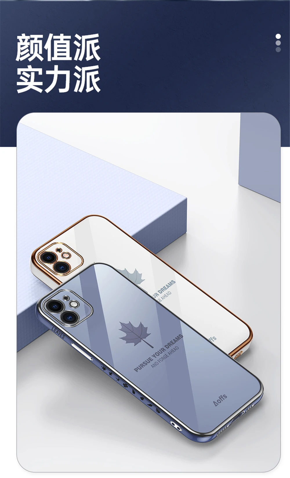 StyleLuxury Square Plating Maple Leaf Pattern Phone Case