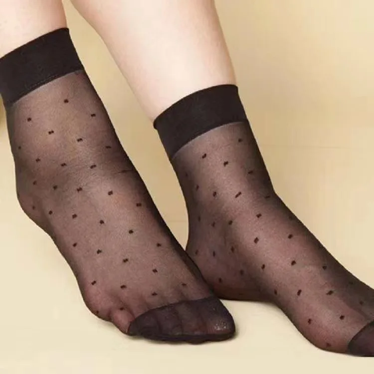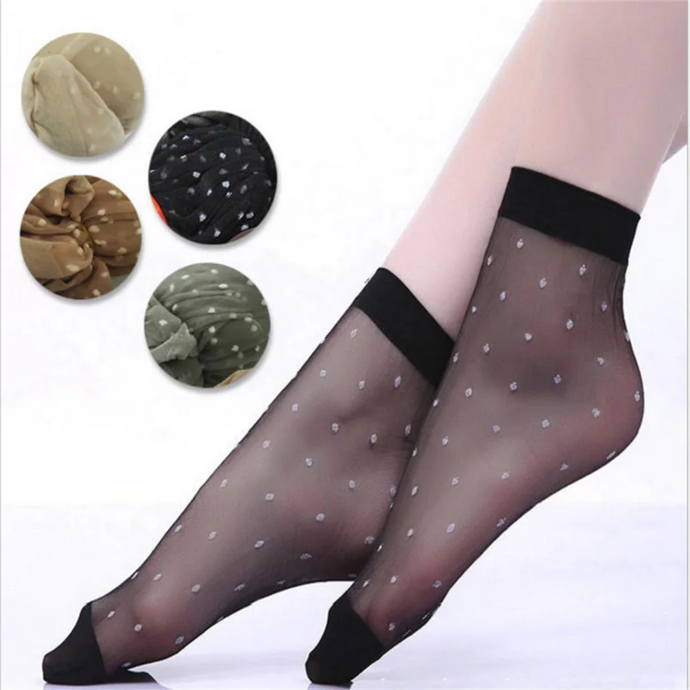 Женские прозрачные носки в горошек, 10 паралот, тонкие шелковые нос...
