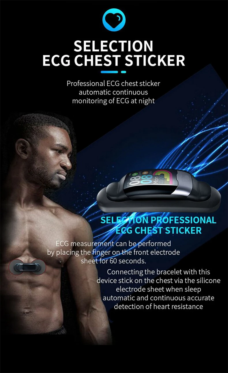 4. Контроль яиц электрода: принимает 3 X 316L медицинские нержавеющие стали и передовые электроды и сенсорные технологии 2-in-l получить результат ЭКГ быстро и точно в течение 60 с, выбор ЭКГ, грудь наклейка: измерение ЭКГ может быть выполнено путем размещения figer на переднем электродном листе fof 60 секунд.