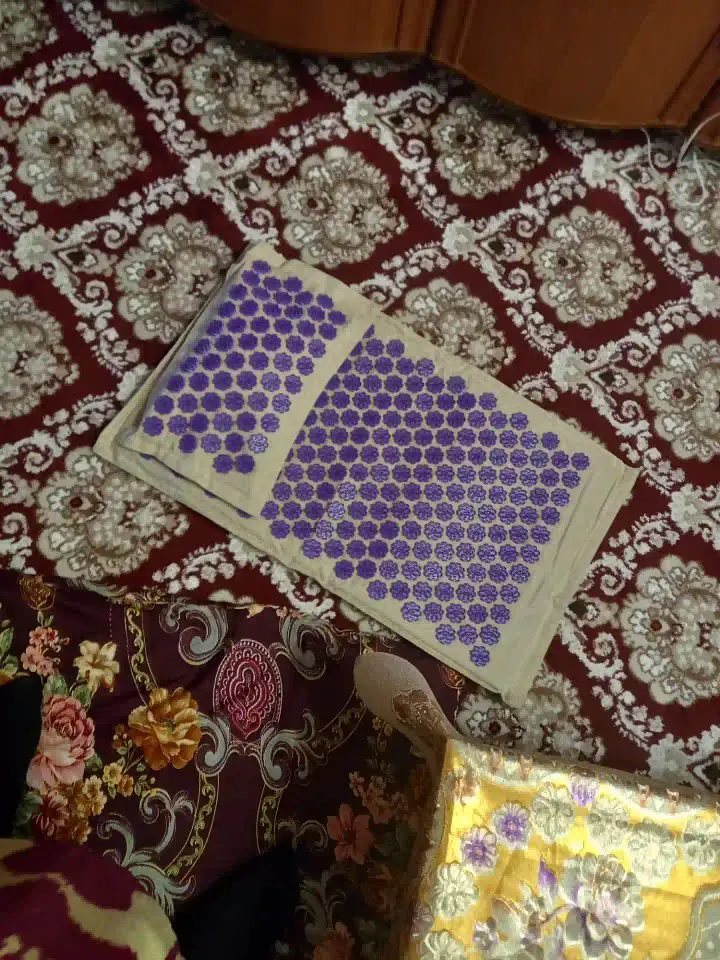 Коврик и подушка отличные Запаха нет никакого. В подушке гречка пересыпается, в коврике плотный и толстый наполнитель. Иголочки острые. Единственное, что все портит - доставка службой cse... Только с третьего раза доставили до двери, испорчено куча нервов и потрачено 2/3 выходного дня на ожидание. В результате, доставка месяц в Москву