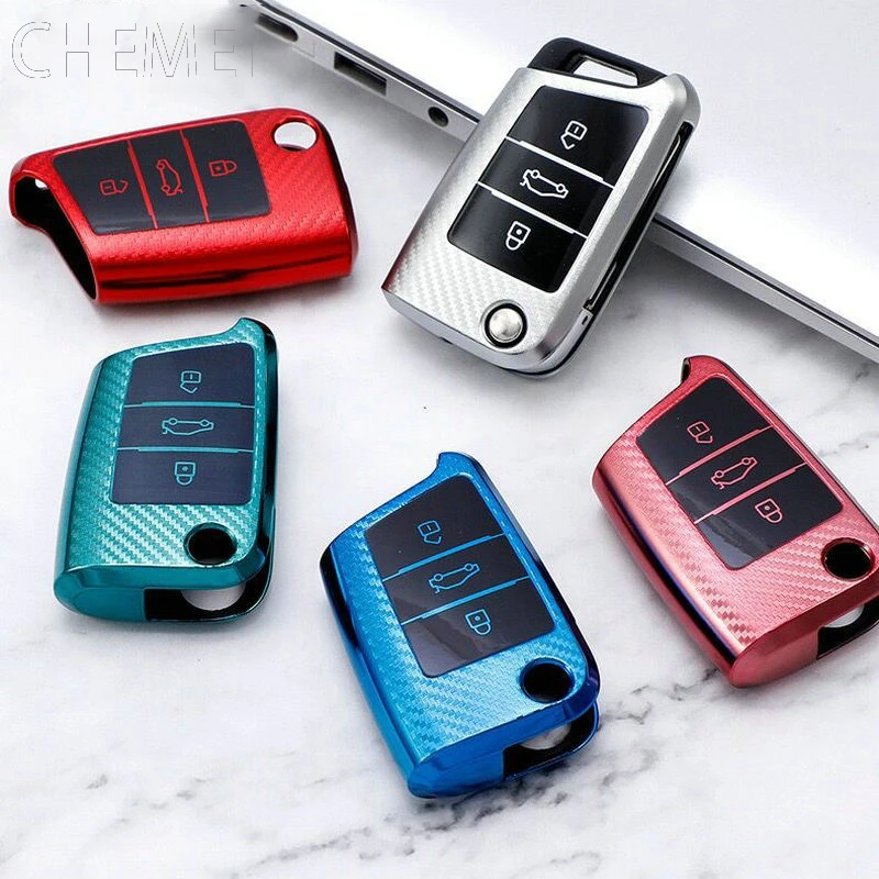 Чехол для автомобильного ключа из углеродного волокна, ТПУ, для Vw Golf 7, Polo, Seat Ibiza, Leon 5f