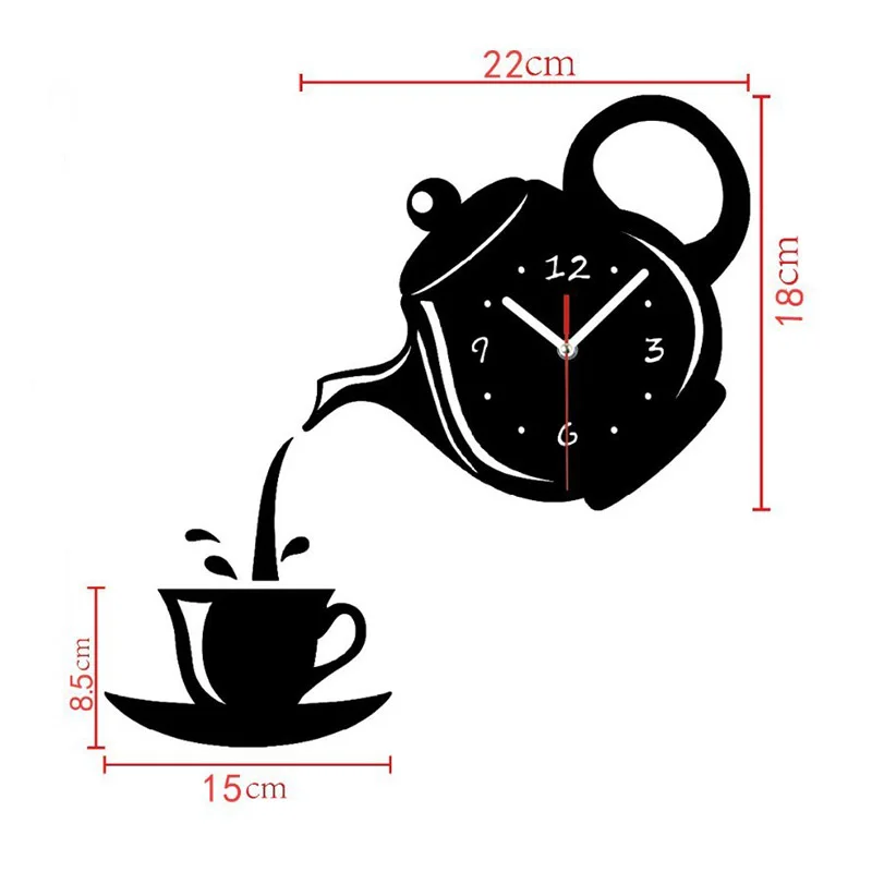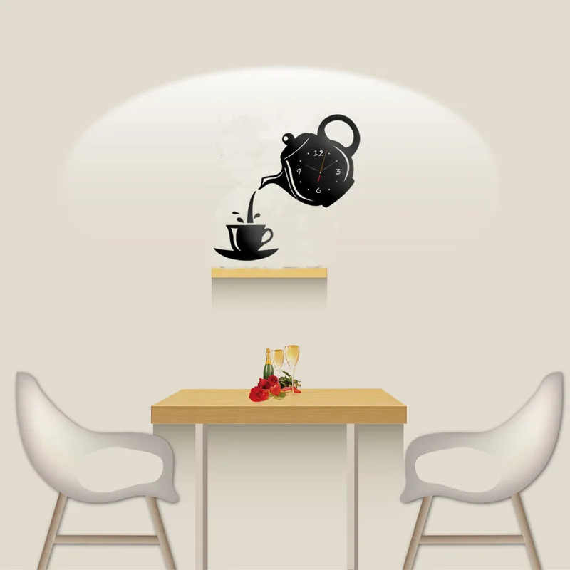 Креативная Наклейка на стену, акриловая кофейная чашка, чайник, 3D настенные часы, декоративные настенные часы для кухни, гостиной, столовой, домашний декор