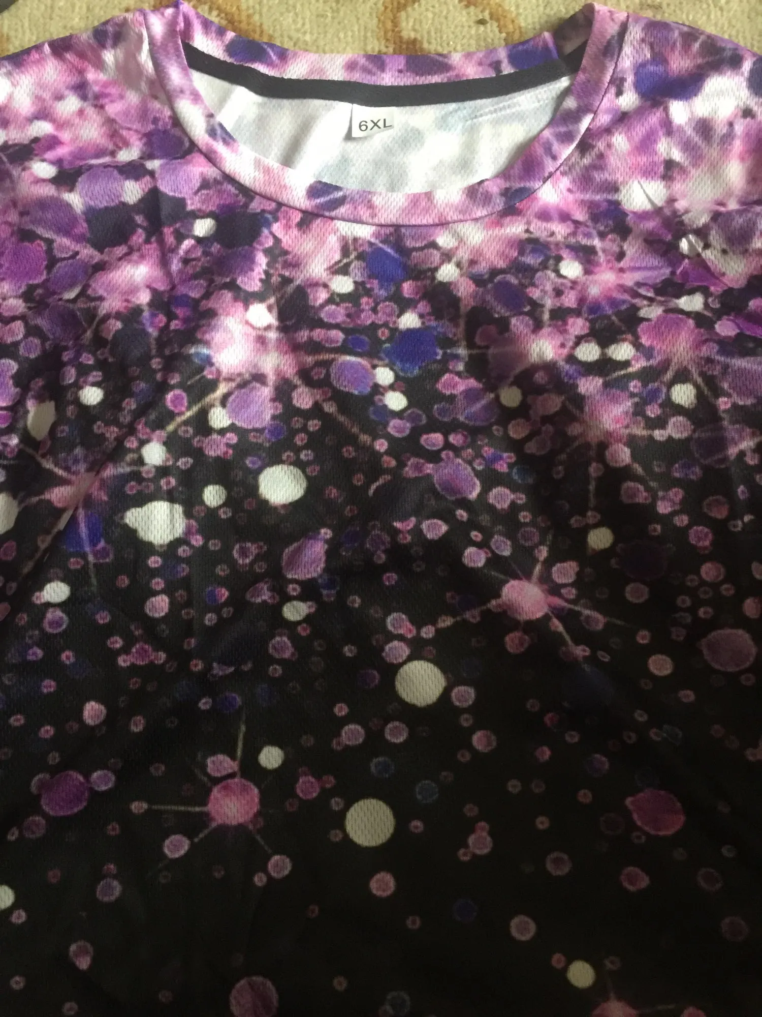 Мне нравиться футболка!Она сшита из синтетической ткани , но приятной к телу!Размер 6,подошёл мне на 58 размер!Футболка тоненькая и яркая!Доставка в Минск три недели!Я буду носить футболку с удовольствием!Благодарна продавцу и рекомендую его!