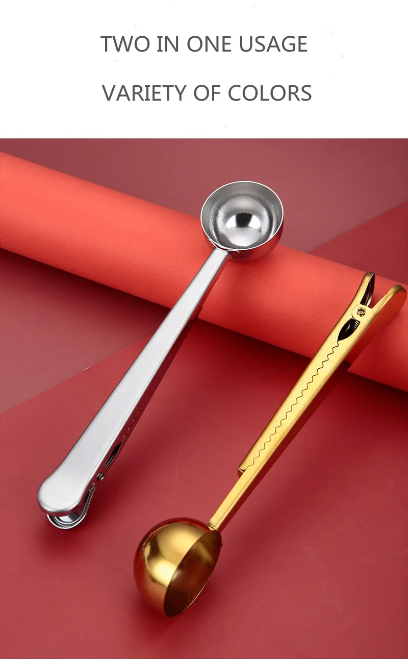 Два в одном, Нержавеющаясталь Кофе ложка уплотнительный зажим Кухня...
