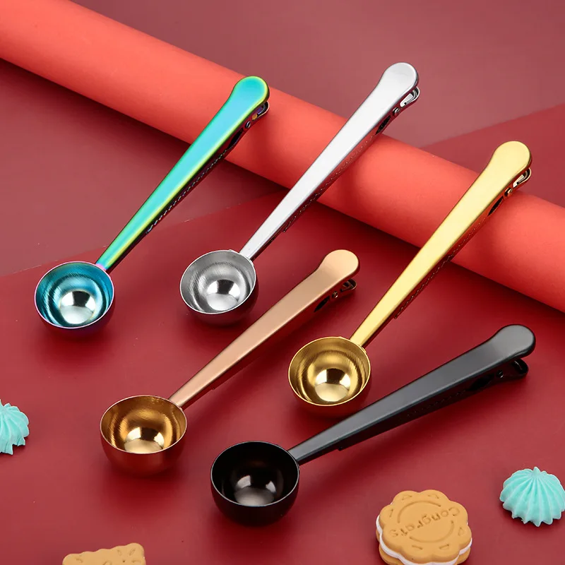 Два в одном, кофейная ложка из нержавеющей стали, уплотнительный зажим для кухни, золотые аксессуары для получателя, украшение для кафе Expresso Cucharilla