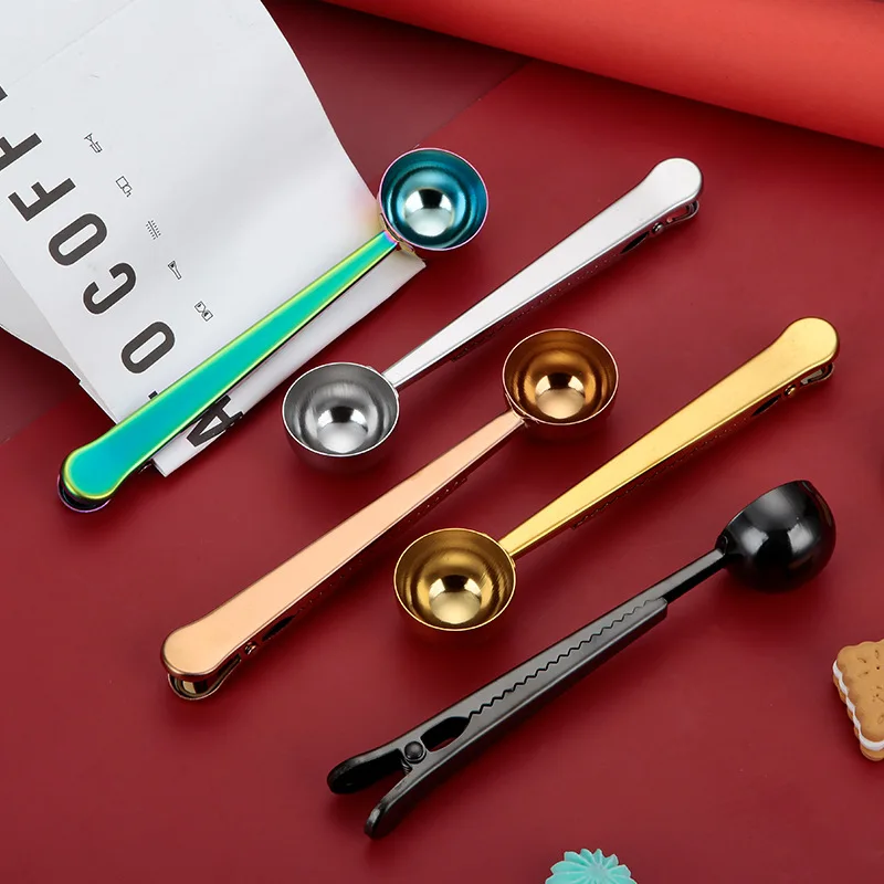 Зажим для ложки кофе из нержавеющей стали 2-в-1, кухонные золотые а...