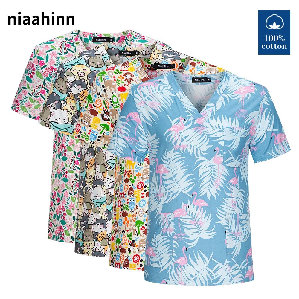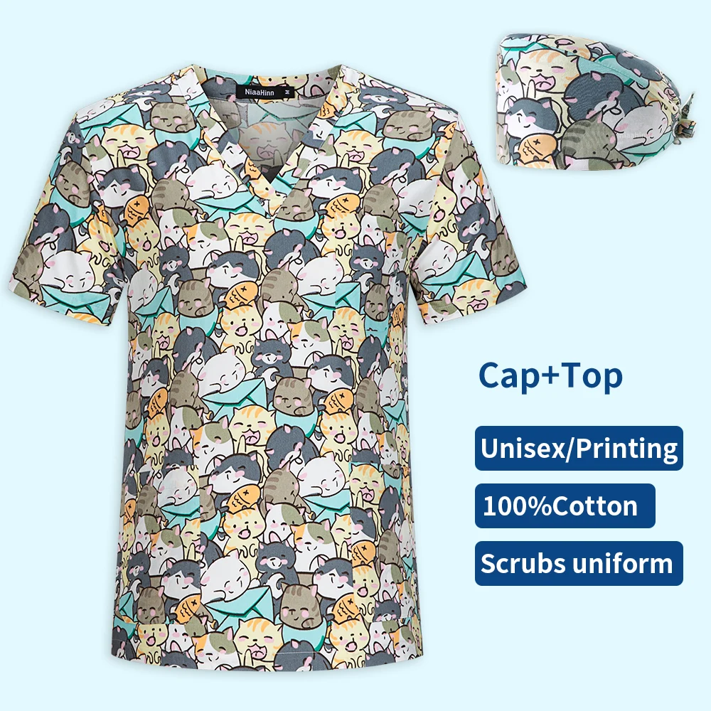 Униформа женская с мультяшным принтом, хирургический Топ, рабочая одежда для врачей и хирургов, костюм для стоматологической клиники, рабочая одежда для ухода за питомцами