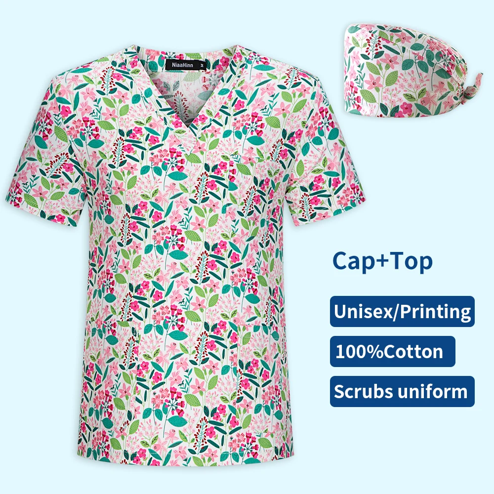 Хлопковая рабочая одежда унисекс с принтом, скрабы для салонов крас...
