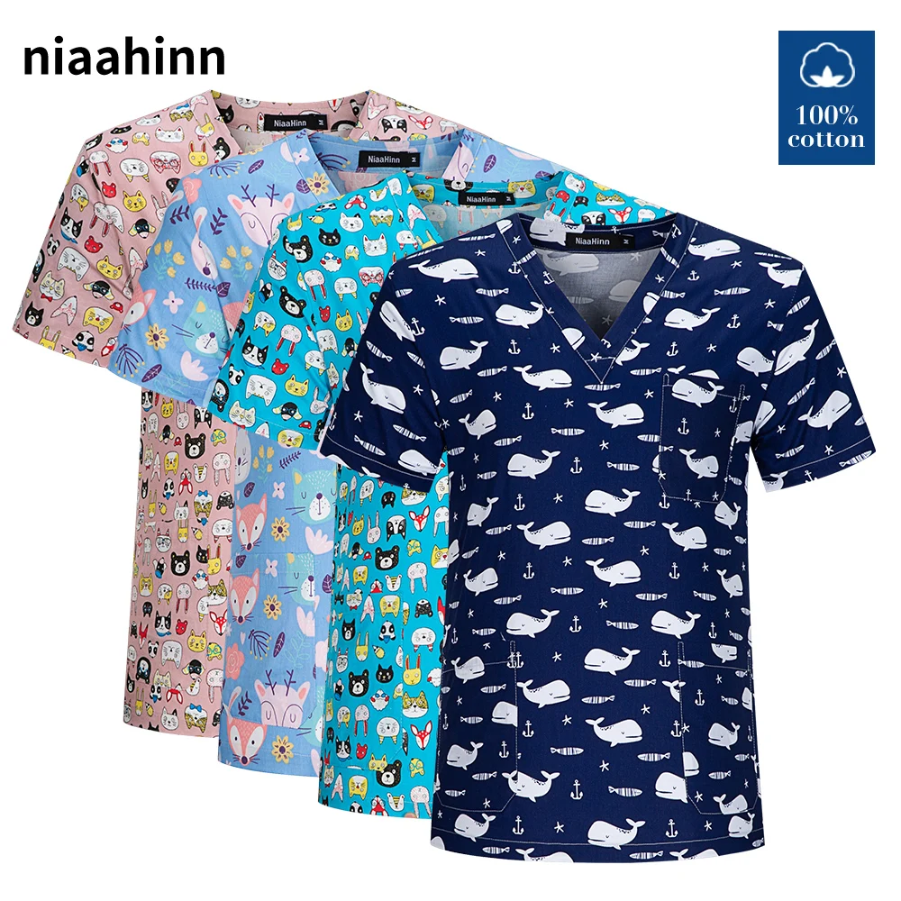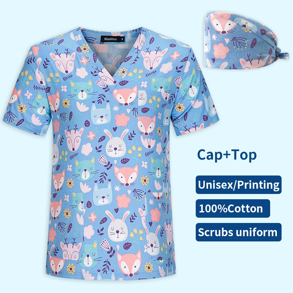 Одежда для хирургии с принтом животных, хлопковая медицинская одежд...