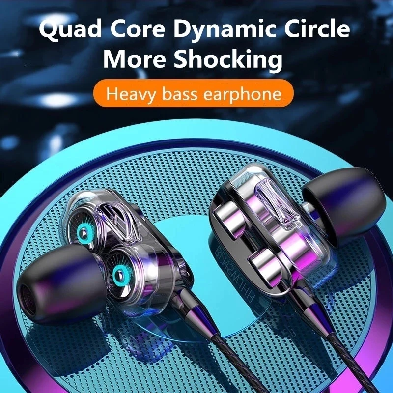 Проводные стереонаушники Dual Drive, Универсальные наушники-вкладыши с усиленными басами, проводные спортивные игровые гарнитуры с микрофоном для телефона