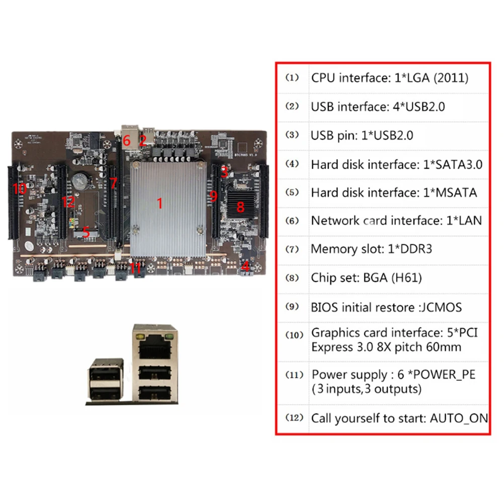 BTC X79-H61 Miner материнская плата LGA 2011 DDR3 5x PCI-E 8X MSATA...