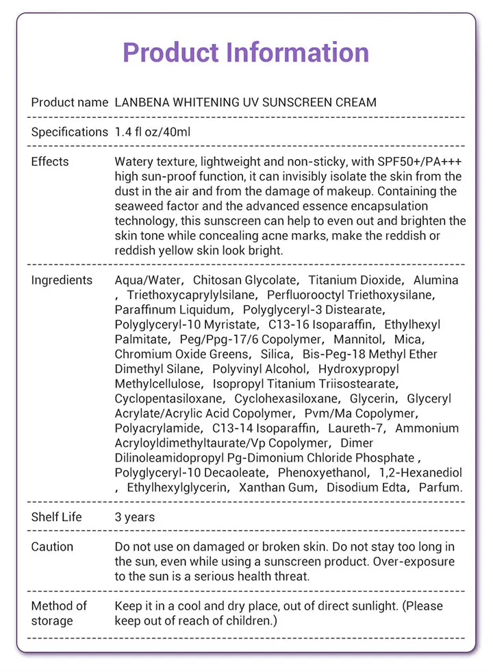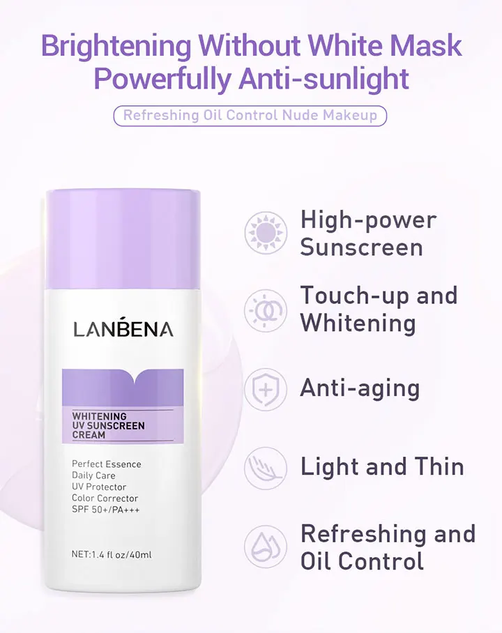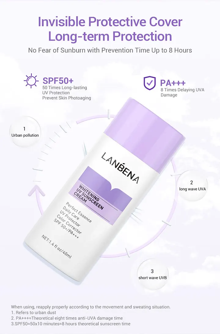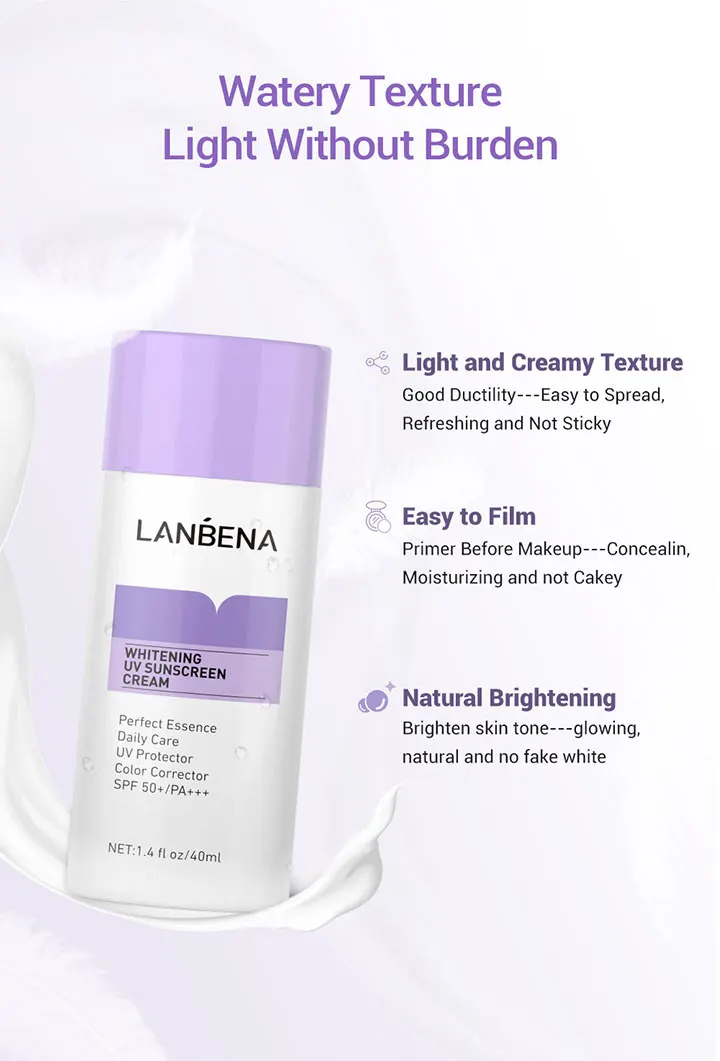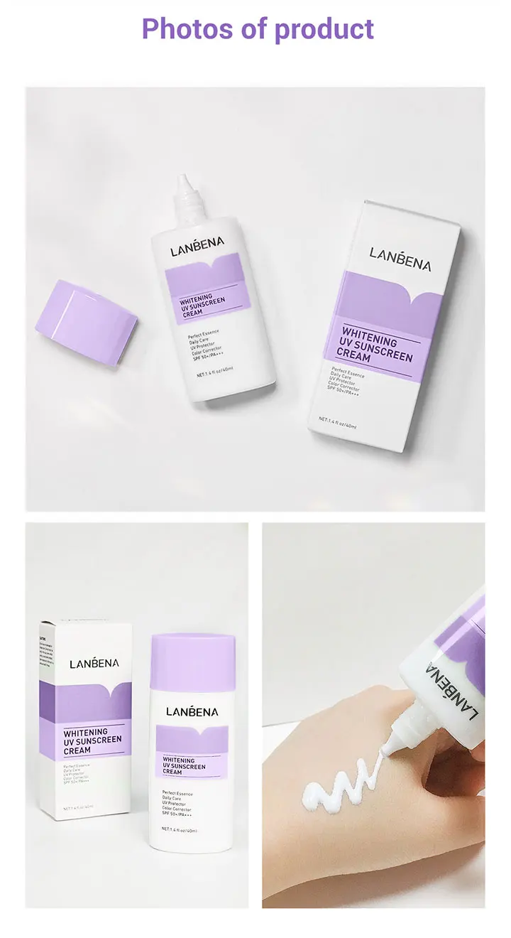 Отбеливающий УФ-крем LANBENA, солнцезащитный крем с Spf 50, отбеливающий крем для лица и тела, отбеливающий, с защитой от солнца и масла, водостойкий макияж, 40 мл