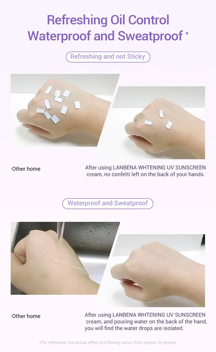 Не бойтесь солнечных ожогов со временем профилактики до 8 часовSPF50 +50 раз длительная УФ-защитаПредотвращает Фотостарение кожиПА +++8 раз задержки Уфа повреждения городского загрязнения, длинноволны Уфа и коротковолнового уфвПри использовании наносите правильно в зависимости от движения и потоотделения.1. SPF50 = 50x10 минут = 8 часов теоретического солнцезащитного времени2. PA +++ ≈теоретическое восьмикратное время повреждения от Уфа3. Относится к городской пыли