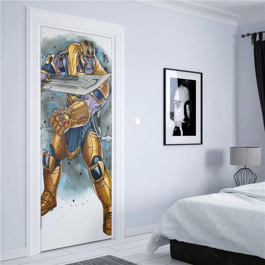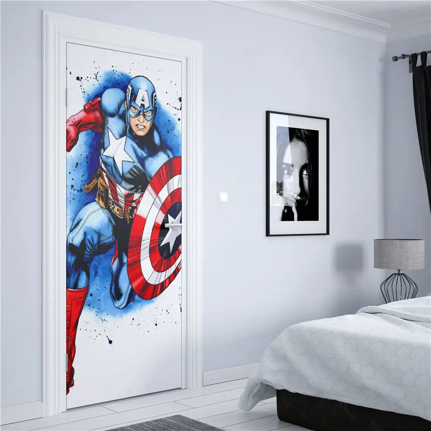 Водостойкая наклейка на дверь в виде супергероя Марвел, водостойкая наклейка с граффити, Настенный декор, художественный декор, наклейка на стену с героями мультфильмов