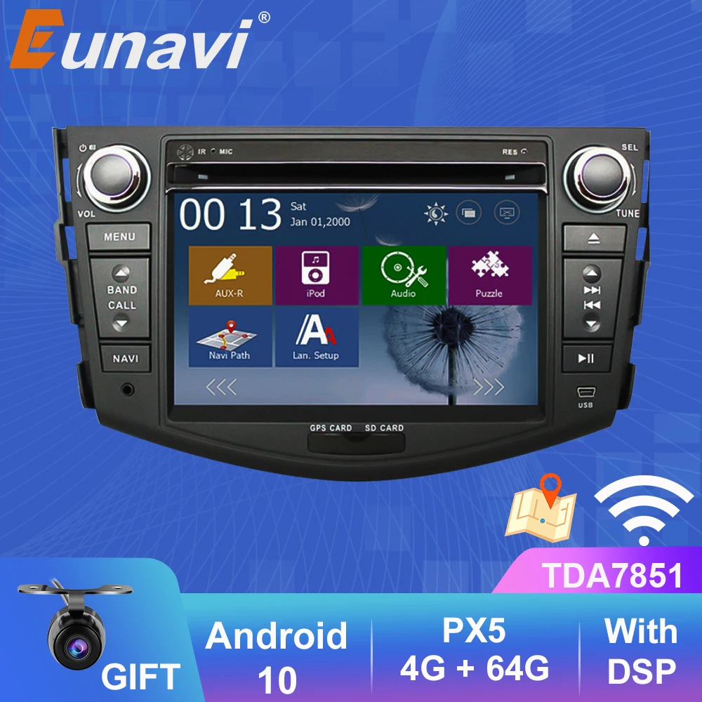 Автомагнитола Eunavi, 2 Din, Android 10, DVD, мультимедийный плеер для Toyota RAV4, Rav 4, 2007, 2008, 2009, 2010, 2011, головное устройство, GPS-навигация, 4 ГБ, 64 ГБ
