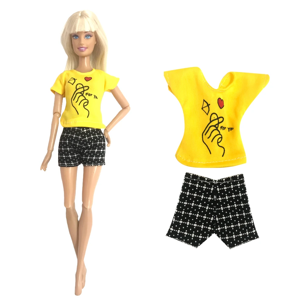 2 шт.компл., семейная Одежда для кукол, футболка с милым рисунком Love + клетчатые шорты для куклы Барби, Одежда для куклы Ken